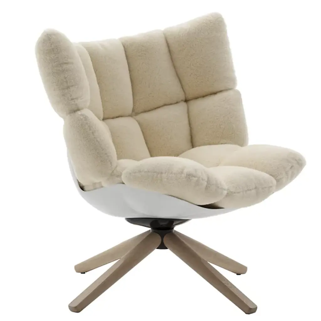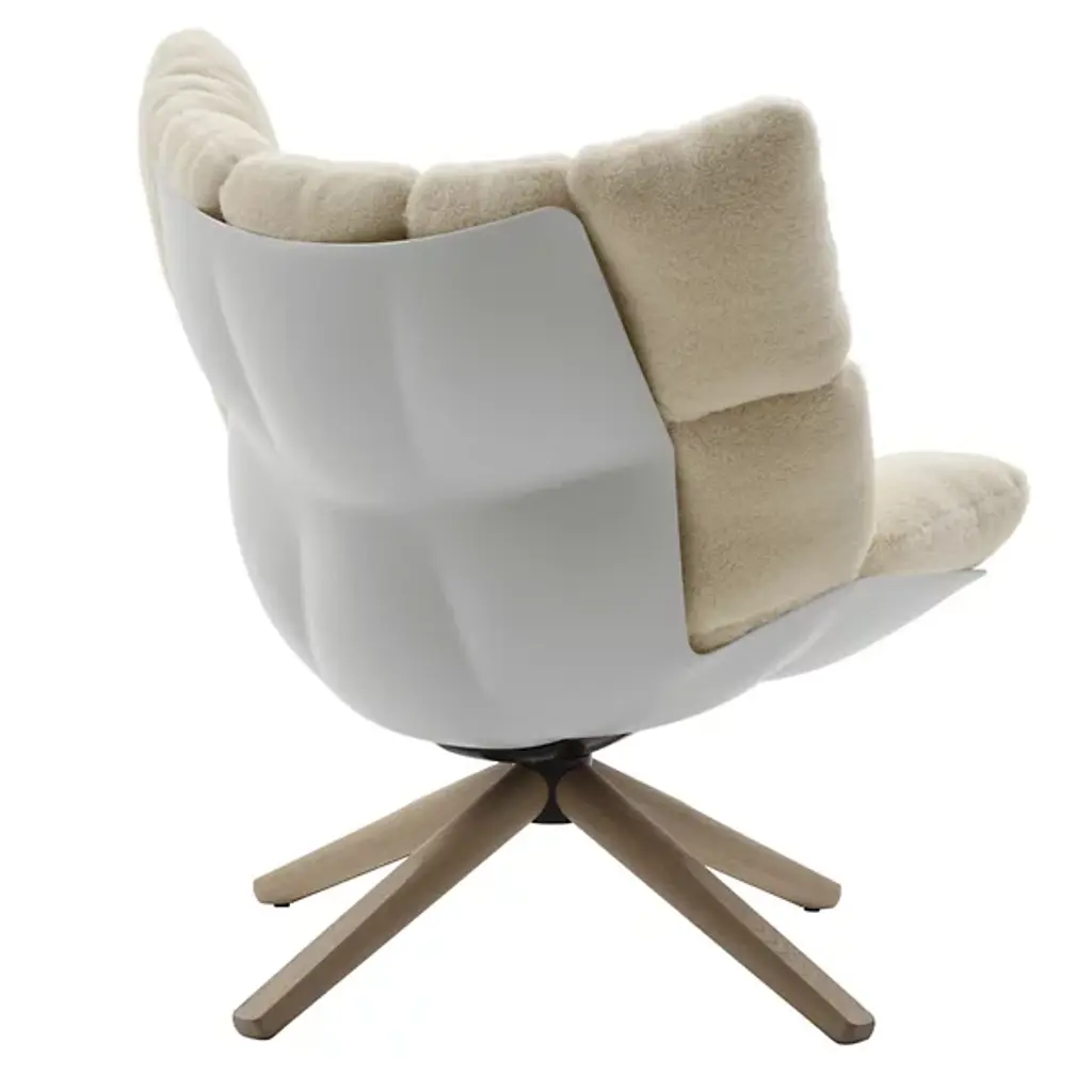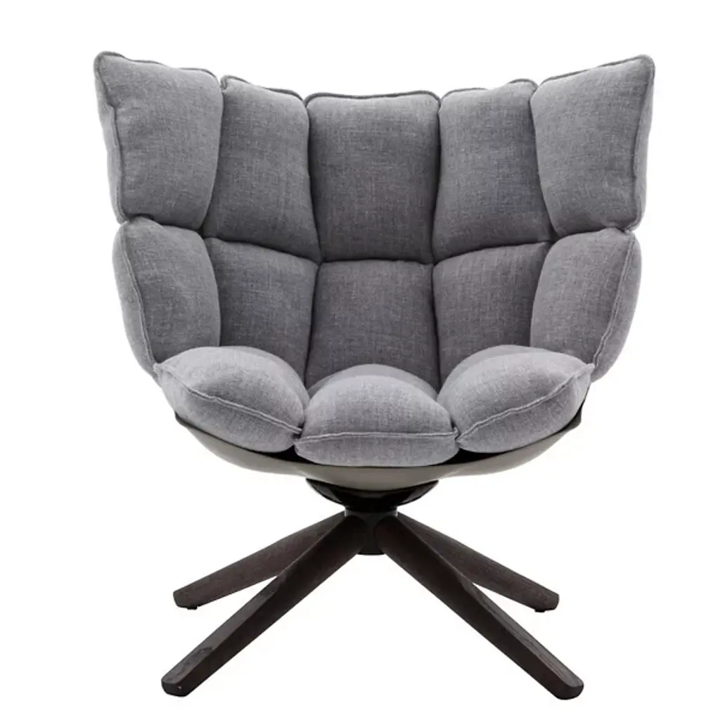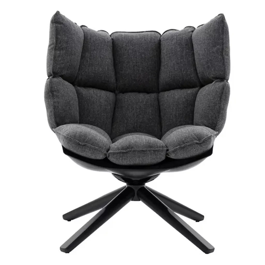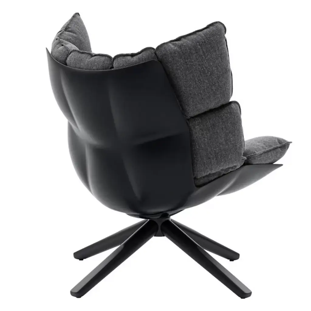 The Husk Swivel Armchair from B&B Italia delivers a cozy seating experience with its pattern of plump, eco-sustainable cushioning. Designer Patricia Urquiola's work connects the familiar to the unexplored, a process that is shown in the classic materials and their artful presentation at play. Creating a flowy silhouette, the chair's seat shell packs a Hirek® plastic made from recycled and recyclable polymers. The capitonné style padded cushion is made to create a supportive, hugging sensation.