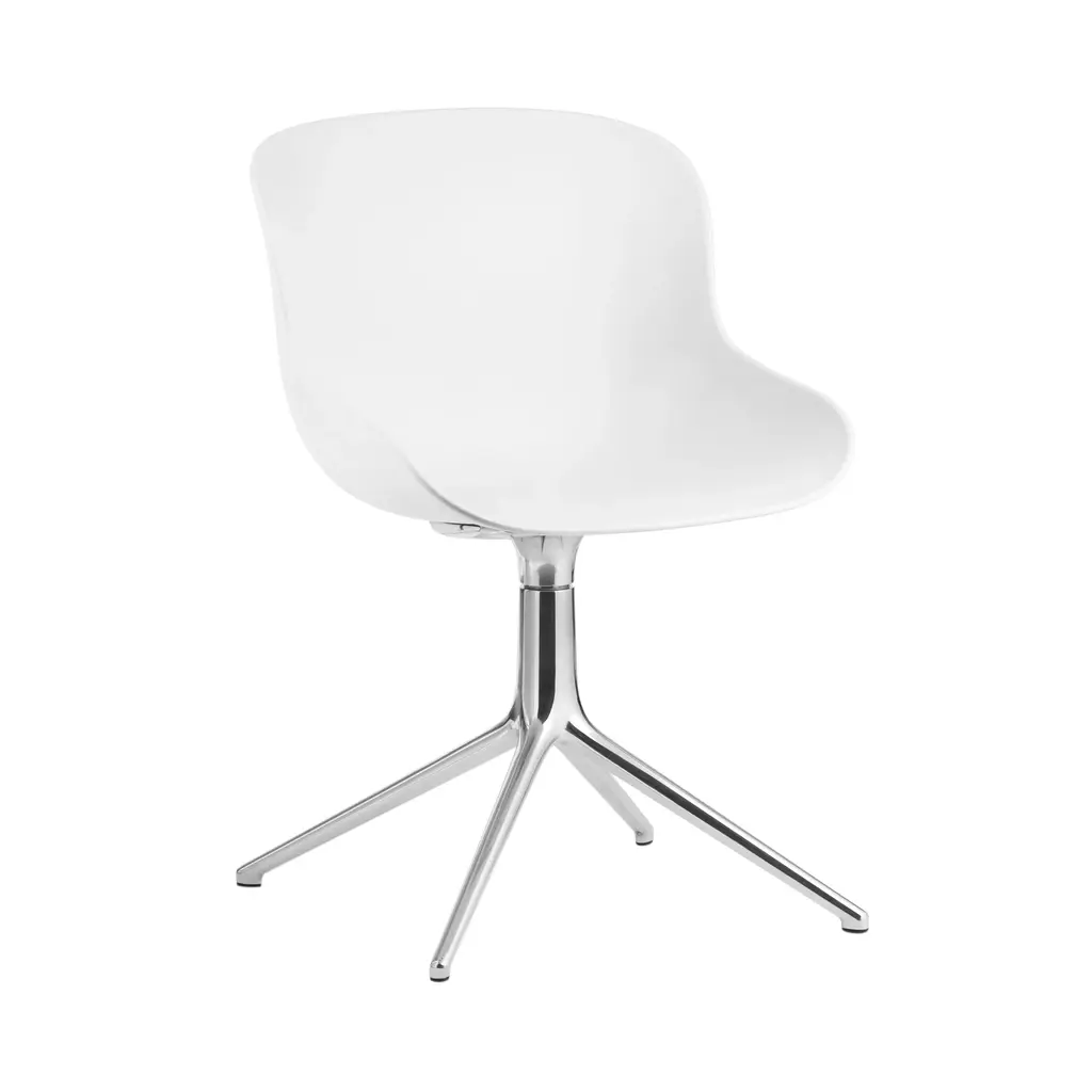 A swivel option makes Copenhagen designer Simon Legald's seating Hyg particularly suitable for locales like conference rooms and restaurants. In a choice of silver or black aluminum, the rotating base adds increased utility to the chair's expansive proportions. Inspired by the Danish notion of hygge, the sculpted shape provides for a range of comfortable positions as well as a sense of embracing security with its signature raised seat edge.