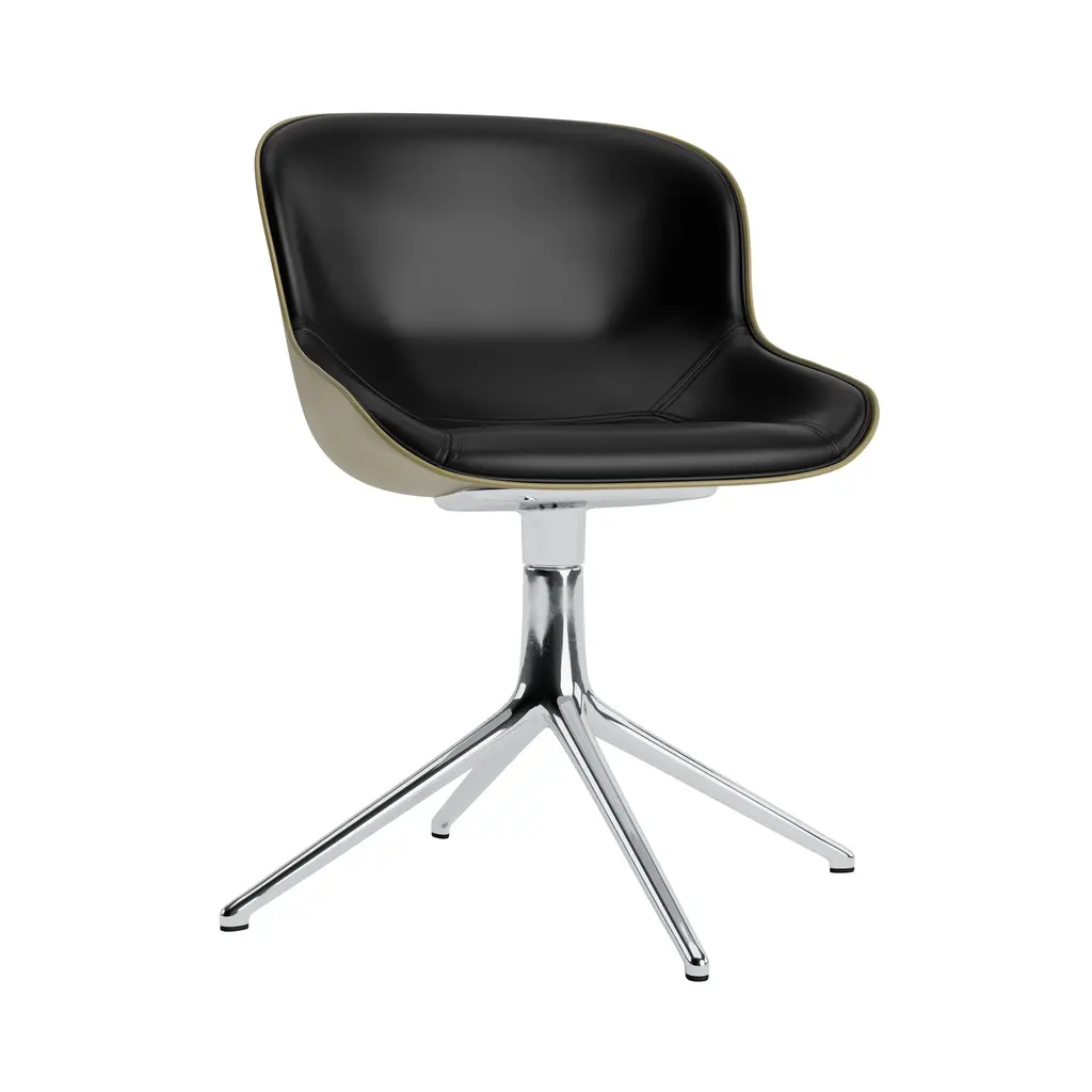 For settings like office conference rooms and restaurants, Hyg adds the custom option of front upholstery for its swivel chair. Designer Simon Legald's sculpted seating accommodates a range of fine fabric and leather selections to complement the rotating base in a choice of silver or black aluminum. Reflecting the vaunted Danish hygge, the chair's expansive proportions allow for a range of comfortable seated positions with the added utility of rotating movement.