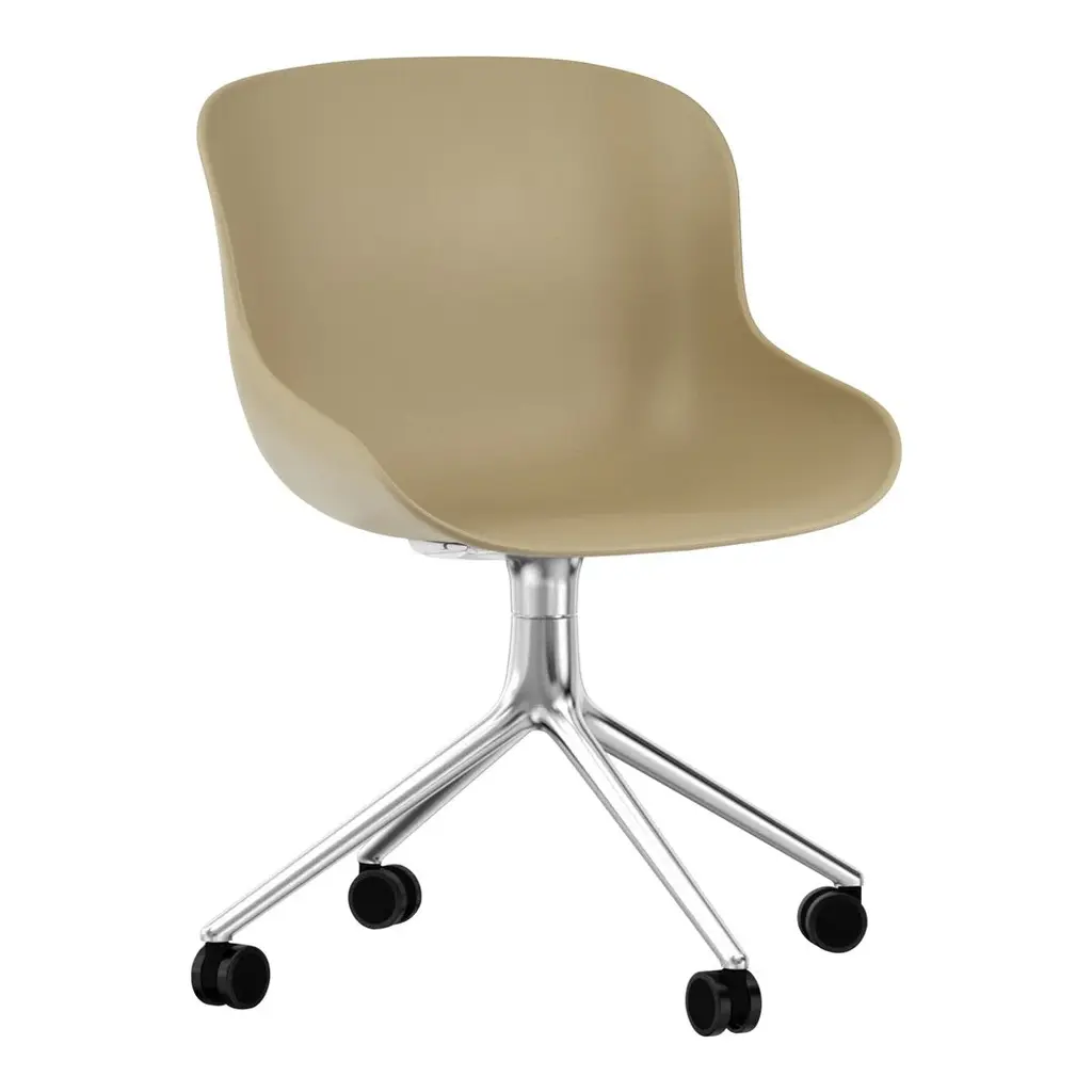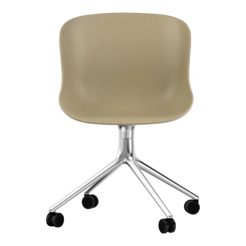 A shell of high-strength polypropylene is mounted to a swivel base with four wheels. The Hyg chair swivel 4W is available with frontor full upholstery following the shell color. The Hyg chair swivel4W is delivered fully assembled.