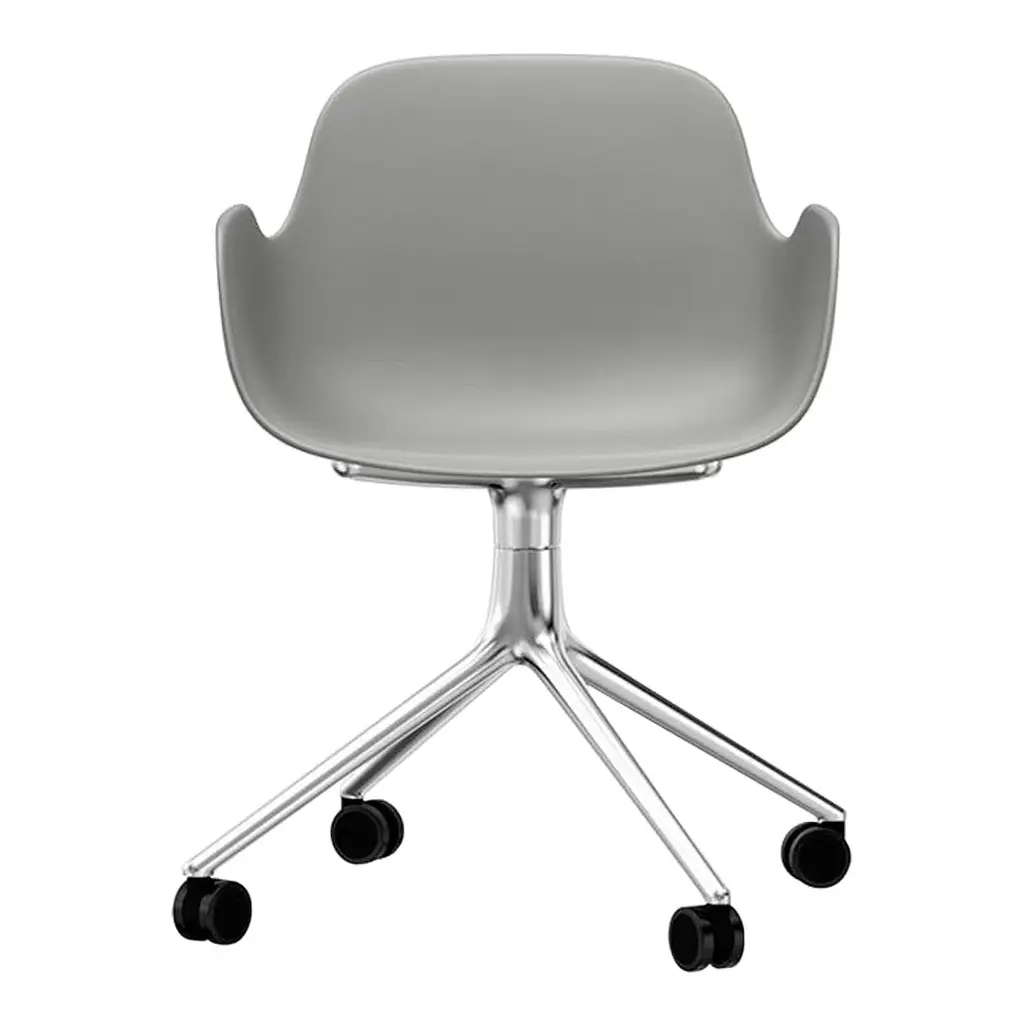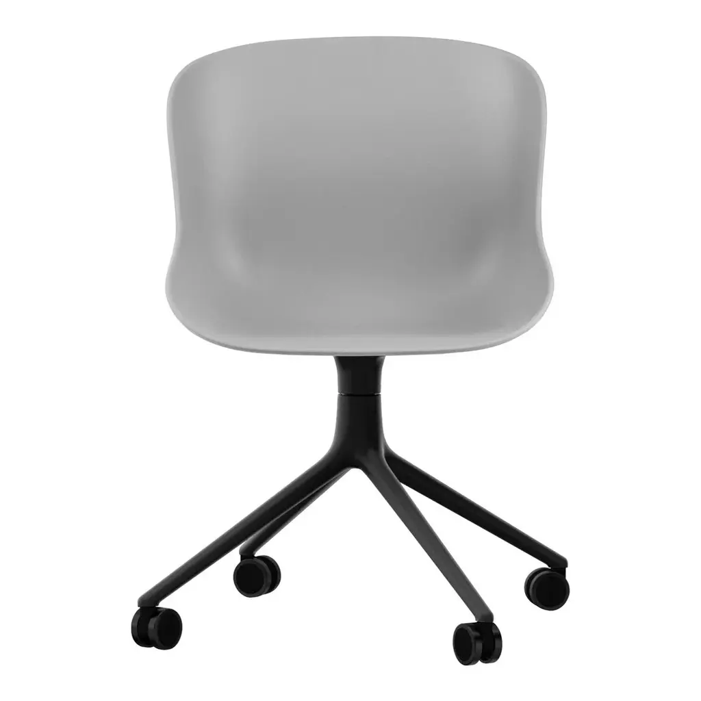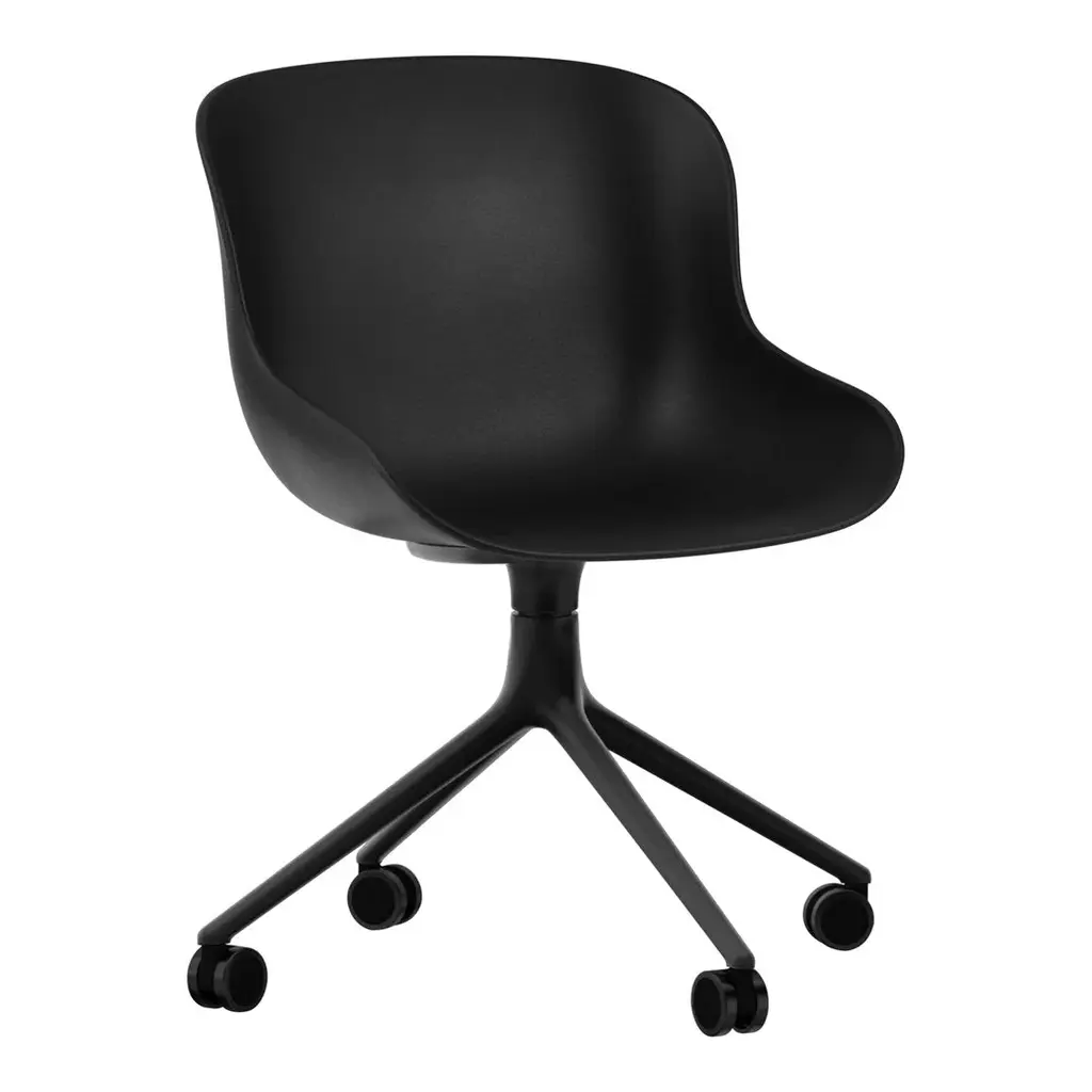A shell of high-strength polypropylene is mounted to a swivel base with four wheels. The Hyg chair swivel 4W is available with frontor full upholstery following the shell color. The Hyg chair swivel4W is delivered fully assembled.