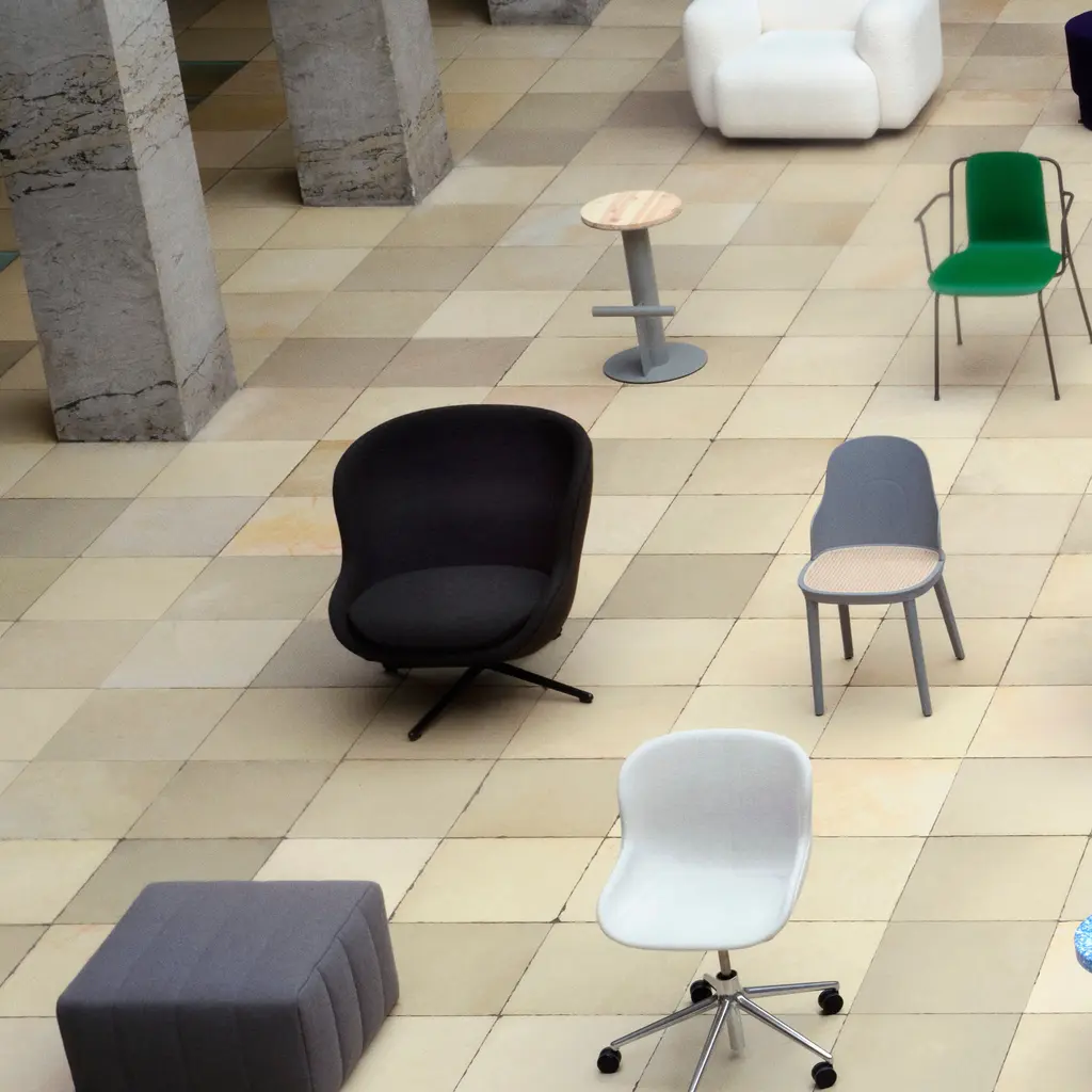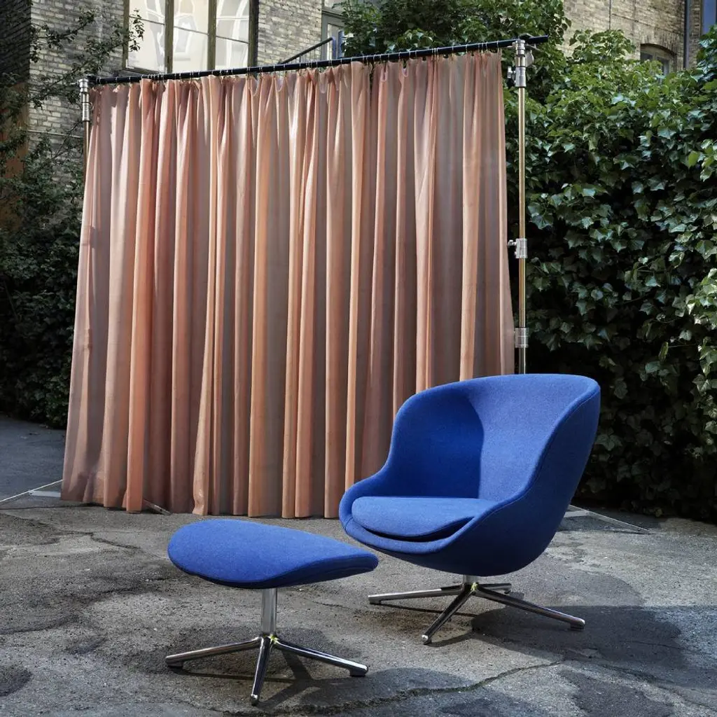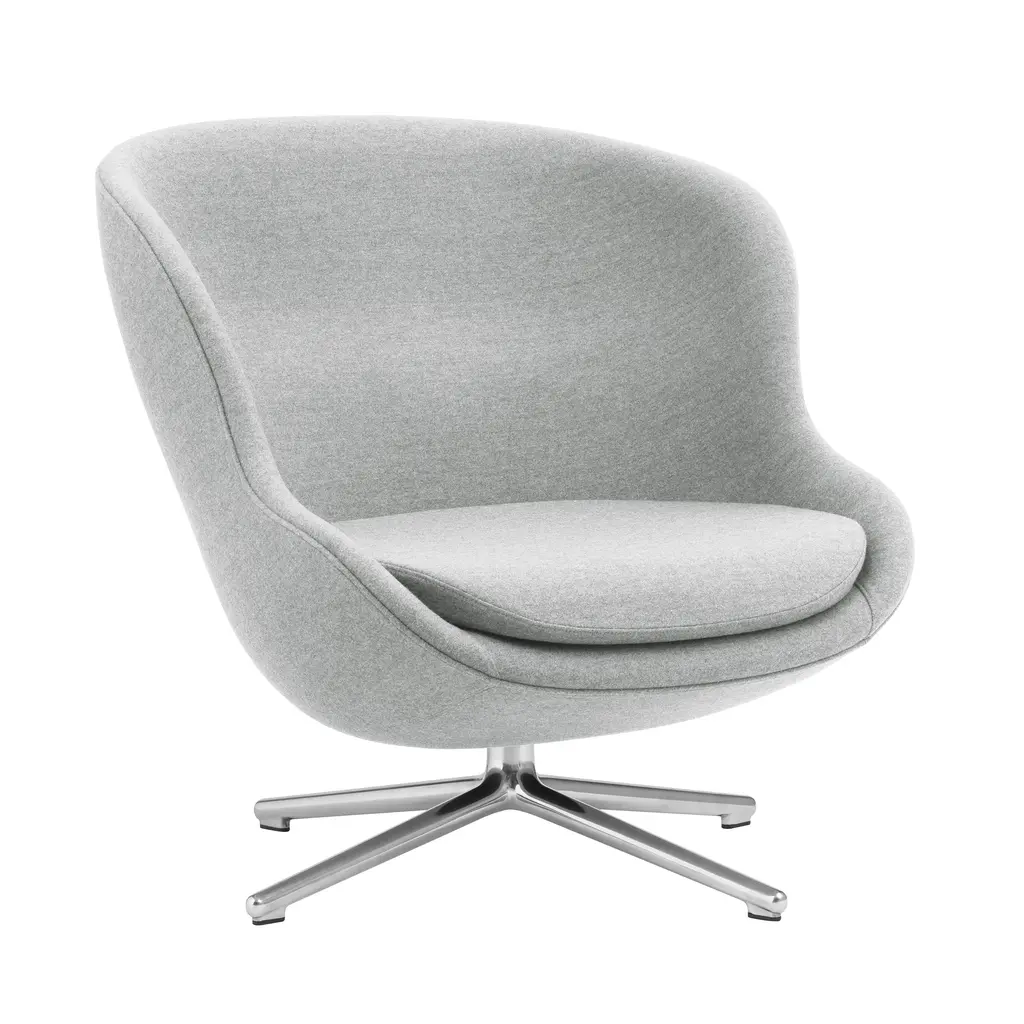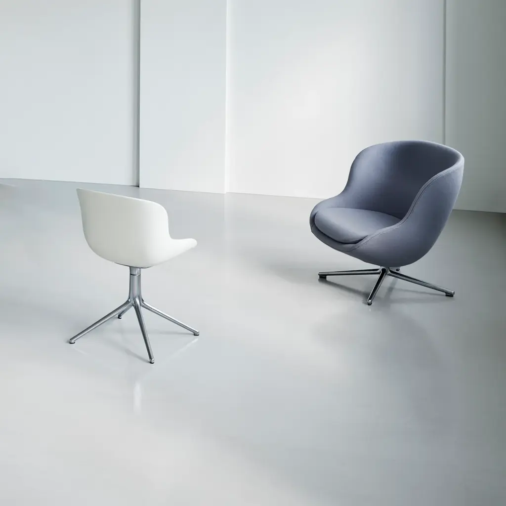 A swivel base brings added versatility to this lounge chair named for its virtues of coziness and calm. Hyg (short for the beloved Danish tradition of hygge) combines sheltering contours and a broad seat to accommodate a wide range of relaxed positions. Upholstery in a fine textile or rich leather enrobes the chair's concave shape, making for a luxurious respite for relaxation or intimate conversation.