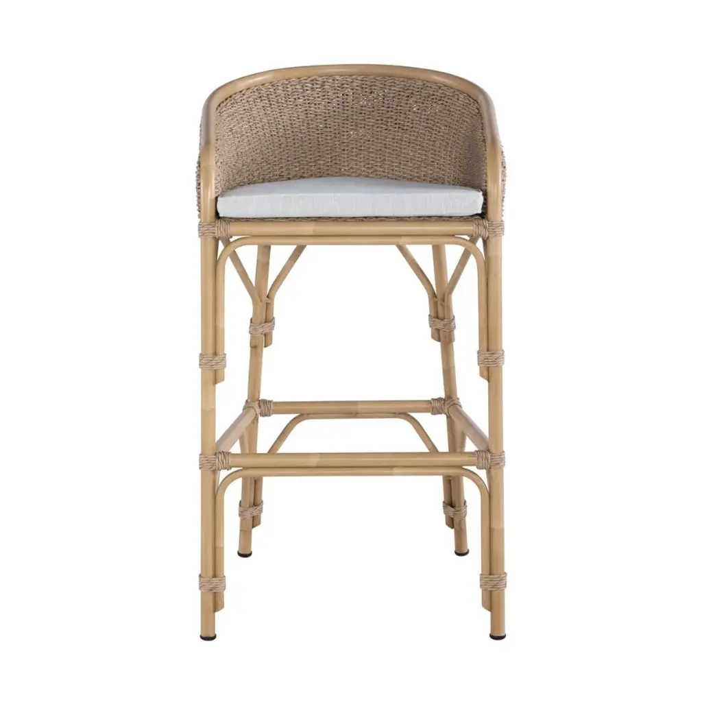 Introducing our stunning white star pattern outdoor bistro chair! With its faux rattan weave and coastal design, this chair is perfect for adding a touch of elegance to your outdoor space. Enjoy dining al fresco in style and comfort.