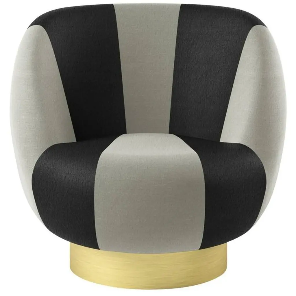 This elegant black and grey swivel armchair, designed by Studio 63 for Marioni, features a metal structure and is available in different fabric or leather upholstery.