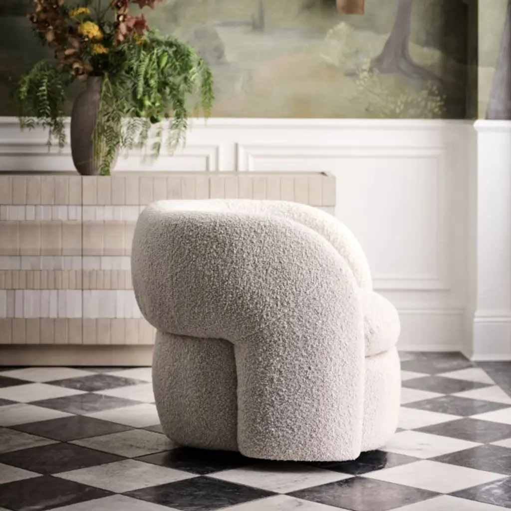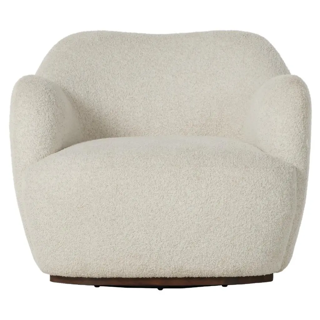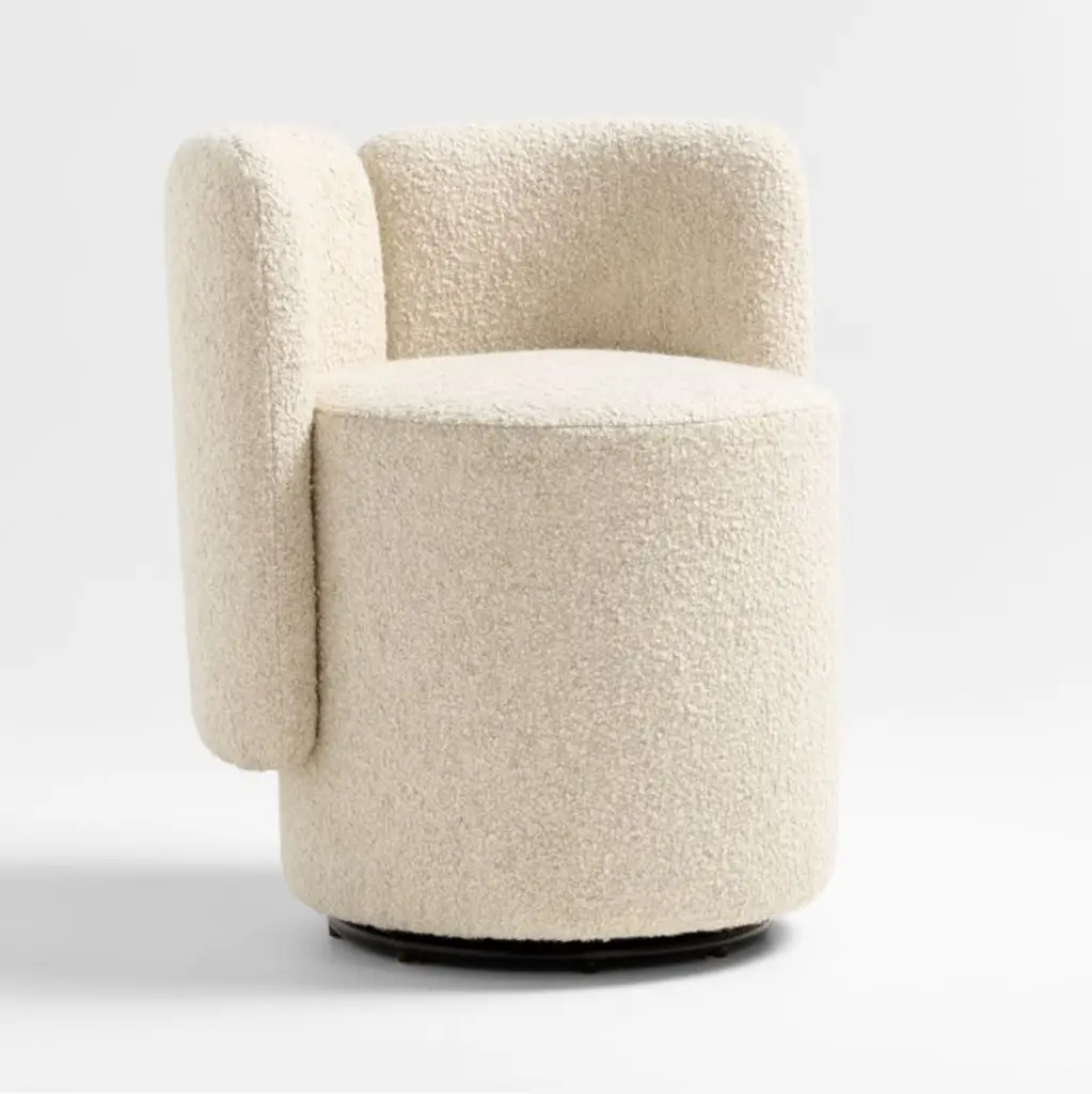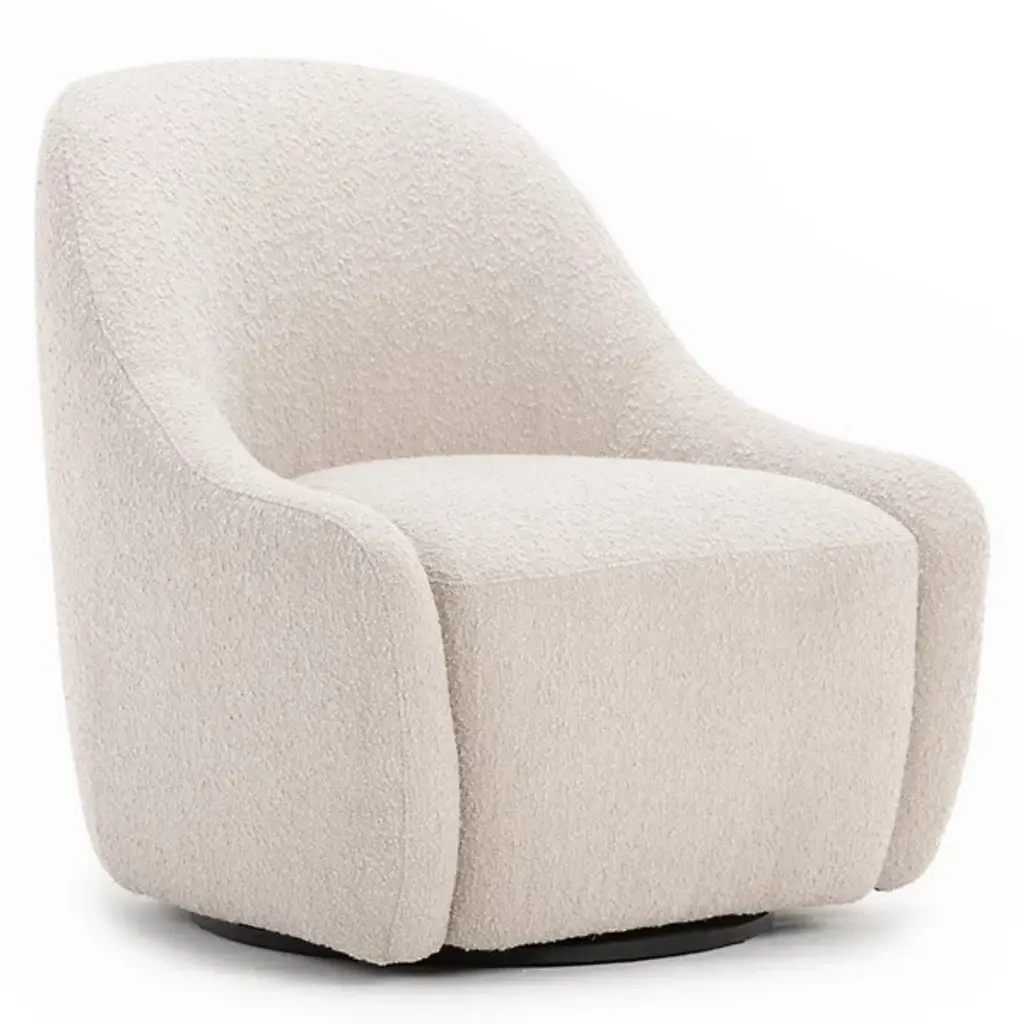 Iso cozies up to curves and texture for an armchair you won't want to leave. Fully upholstered in nubby, cream-colored boucle, the chair flows a barrel back and arms that wrap you in comfort. A soft pillow seat sits on a thick deck with swivel action to give you a room with a view. We love Iso as a single accent chair or doubled up with a side table in between.Exclusive collaboration! L.A.-based star designer Brigette Romanek redefines design rules as only she can, with playfully unexpected forms to bring you the fresh look her A-list clients love.