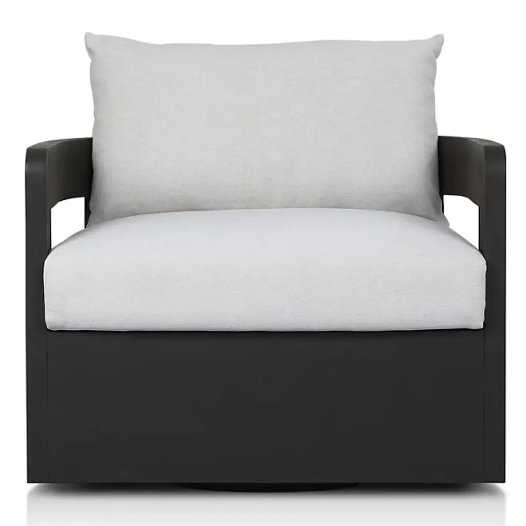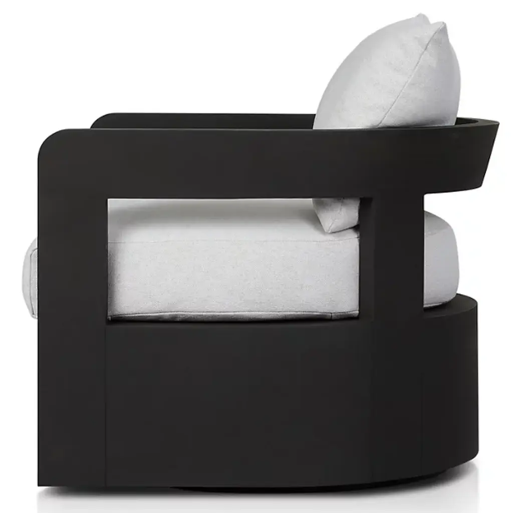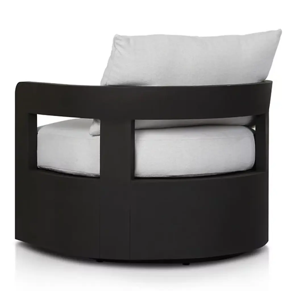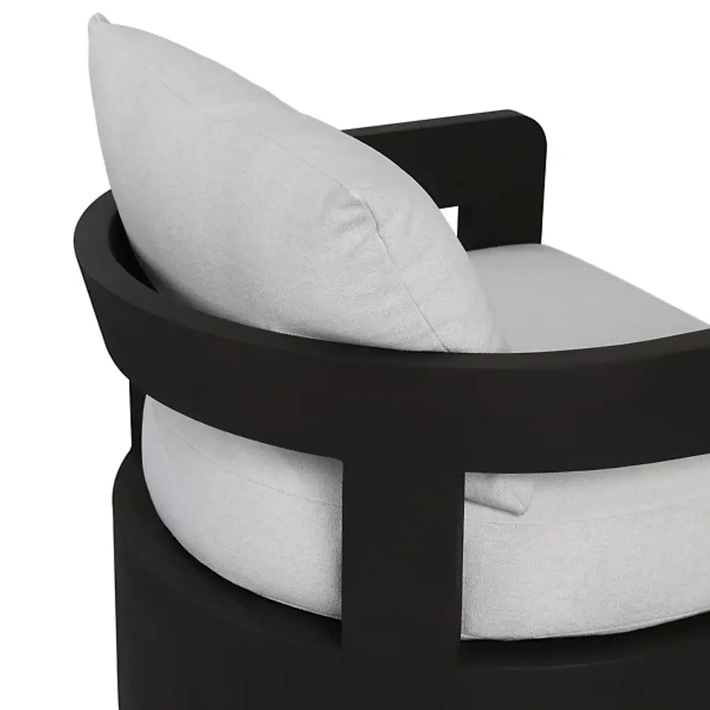 The Jackson Outdoor Swivel Chair from Four Hands combines an aluminum structure with polypropylene upholstery for weather-resistant performance. A 360-degree swivel mechanism adds practical movement, while polyurethane foam and polyester fiber create inviting comfort. The barrel-back design incorporates gentle curves and fluid transitions. Storage or protective covering during harsh weather maintains the swivel chair’s longevity. This chair ascertains that outdoor furniture can balance necessary durability with chic design principles.
