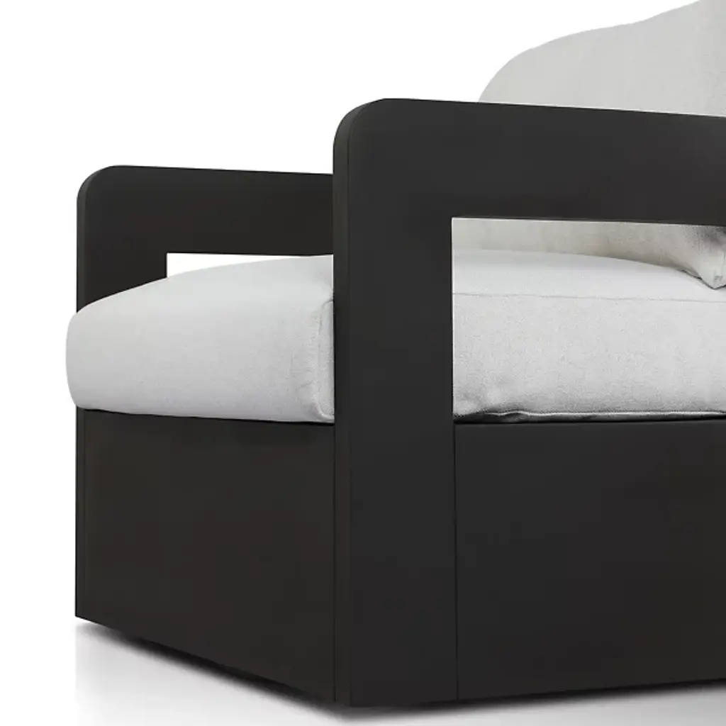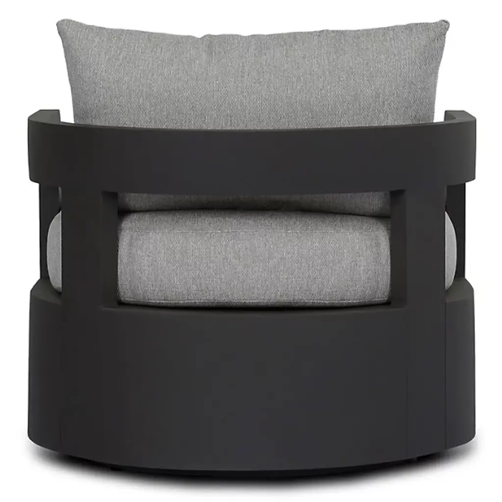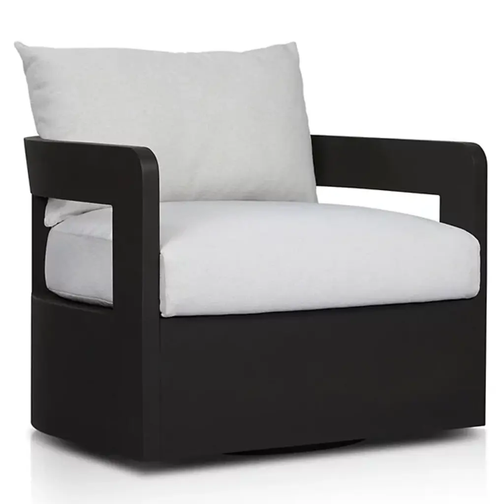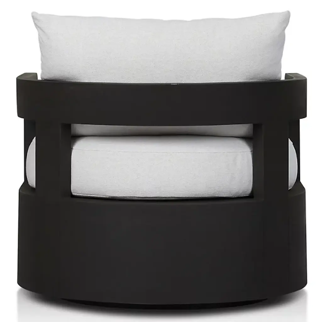 The Jackson Outdoor Swivel Chair from Four Hands combines an aluminum structure with polypropylene upholstery for weather-resistant performance. A 360-degree swivel mechanism adds practical movement, while polyurethane foam and polyester fiber create inviting comfort. The barrel-back design incorporates gentle curves and fluid transitions. Storage or protective covering during harsh weather maintains the swivel chair’s longevity. This chair ascertains that outdoor furniture can balance necessary durability with chic design principles.
