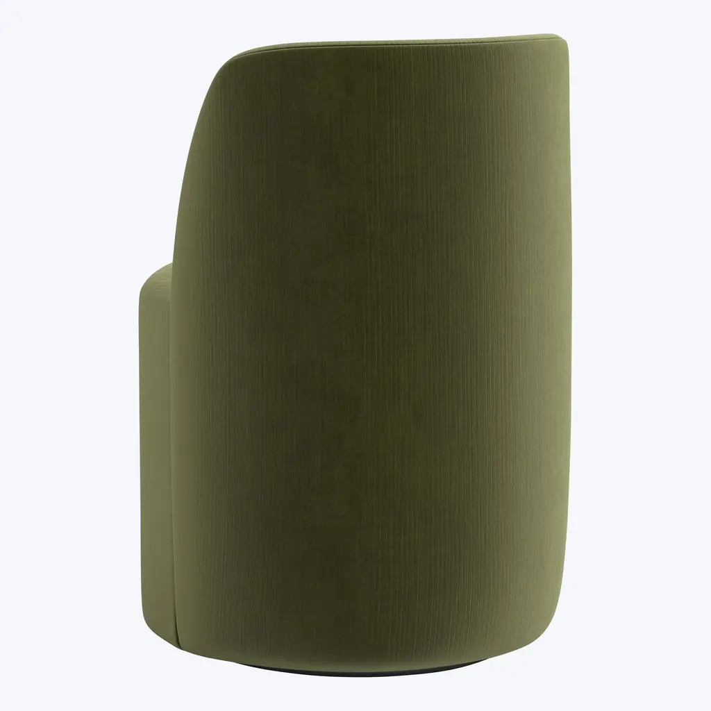 The Jessa Swivel Dining Chair, an exclusive creation by abc carpet & home, combines timeless elegance with modern functionality. Handcrafted in the USA, this custom-made chair features a linen-textured upholstery blend that enhances its smooth, sculptural shape. Measuring 22" W x 24" D x 32" H with a 20" seat height, it offers versatile proportions suited to a variety of spaces. Designed with a rounded, body-hugging back and a deep cushioned seat, this armless swivel chair brings exceptional comfort to the dining table while maintaining a clean, sophisticated silhouette. This chair’s seamless swivel function adds a layer of practicality and ease, making it as dynamic as it is stylish. Perfectly suited for intimate gatherings or formal dining occasions, the Jessa Swivel Dining Chair embodies the ideal balance of comfort, utility, and timeless design. Elevate your dining room with this elegant barrel-style seating option, thoughtfully crafted to blend classic design with contemporary functionality.