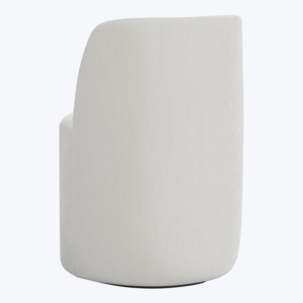 The Jessa Swivel Dining Chair, an exclusive creation by abc carpet & home, combines timeless elegance with modern functionality. Handcrafted in the USA, this custom-made chair features a linen-textured upholstery blend that enhances its smooth, sculptural shape. Measuring 22" W x 24" D x 32" H with a 20" seat height, it offers versatile proportions suited to a variety of spaces. Designed with a rounded, body-hugging back and a deep cushioned seat, this armless swivel chair brings exceptional comfort to the dining table while maintaining a clean, sophisticated silhouette. This chair’s seamless swivel function adds a layer of practicality and ease, making it as dynamic as it is stylish. Perfectly suited for intimate gatherings or formal dining occasions, the Jessa Swivel Dining Chair embodies the ideal balance of comfort, utility, and timeless design. Elevate your dining room with this elegant barrel-style seating option, thoughtfully crafted to blend classic design with contemporary functionality.