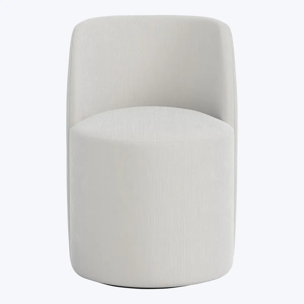 The Jessa Swivel Dining Chair, an exclusive creation by abc carpet & home, combines timeless elegance with modern functionality. Handcrafted in the USA, this custom-made chair features a linen-textured upholstery blend that enhances its smooth, sculptural shape. Measuring 22" W x 24" D x 32" H with a 20" seat height, it offers versatile proportions suited to a variety of spaces. Designed with a rounded, body-hugging back and a deep cushioned seat, this armless swivel chair brings exceptional comfort to the dining table while maintaining a clean, sophisticated silhouette. This chair’s seamless swivel function adds a layer of practicality and ease, making it as dynamic as it is stylish. Perfectly suited for intimate gatherings or formal dining occasions, the Jessa Swivel Dining Chair embodies the ideal balance of comfort, utility, and timeless design. Elevate your dining room with this elegant barrel-style seating option, thoughtfully crafted to blend classic design with contemporary functionality.