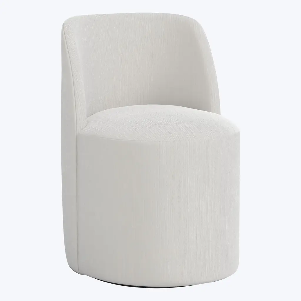 The Jessa Swivel Dining Chair, an exclusive creation by abc carpet & home, combines timeless elegance with modern functionality. Handcrafted in the USA, this custom-made chair features a linen-textured upholstery blend that enhances its smooth, sculptural shape. Measuring 22" W x 24" D x 32" H with a 20" seat height, it offers versatile proportions suited to a variety of spaces. Designed with a rounded, body-hugging back and a deep cushioned seat, this armless swivel chair brings exceptional comfort to the dining table while maintaining a clean, sophisticated silhouette. This chair’s seamless swivel function adds a layer of practicality and ease, making it as dynamic as it is stylish. Perfectly suited for intimate gatherings or formal dining occasions, the Jessa Swivel Dining Chair embodies the ideal balance of comfort, utility, and timeless design. Elevate your dining room with this elegant barrel-style seating option, thoughtfully crafted to blend classic design with contemporary functionality.