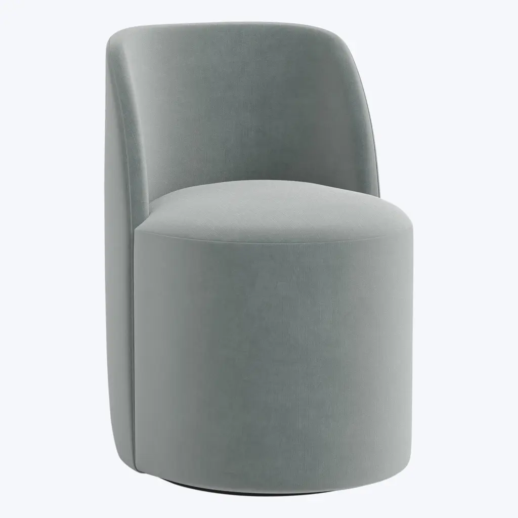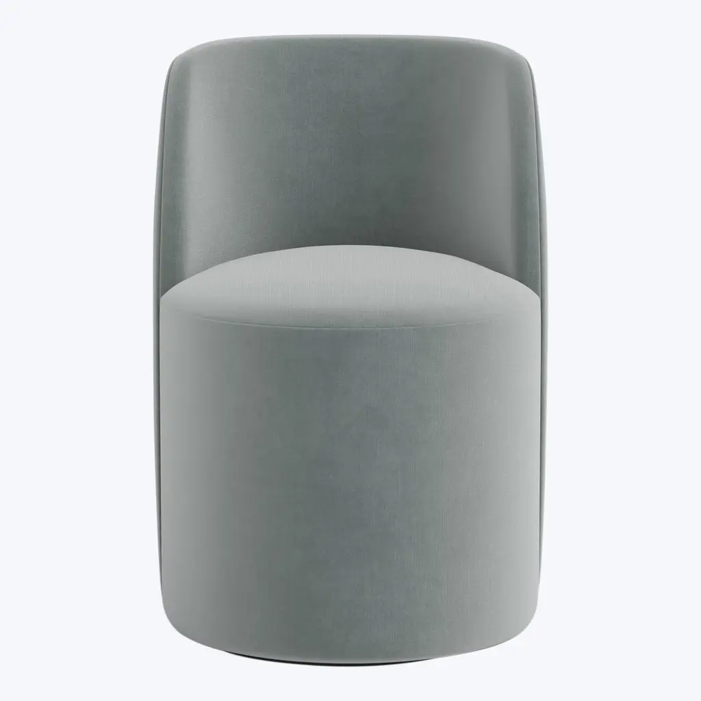 The Jessa Swivel Dining Chair, an exclusive creation by abc carpet & home, combines timeless elegance with modern functionality. Handcrafted in the USA, this custom-made chair features a linen-textured upholstery blend that enhances its smooth, sculptural shape. Measuring 22" W x 24" D x 32" H with a 20" seat height, it offers versatile proportions suited to a variety of spaces. Designed with a rounded, body-hugging back and a deep cushioned seat, this armless swivel chair brings exceptional comfort to the dining table while maintaining a clean, sophisticated silhouette. This chair’s seamless swivel function adds a layer of practicality and ease, making it as dynamic as it is stylish. Perfectly suited for intimate gatherings or formal dining occasions, the Jessa Swivel Dining Chair embodies the ideal balance of comfort, utility, and timeless design. Elevate your dining room with this elegant barrel-style seating option, thoughtfully crafted to blend classic design with contemporary functionality.