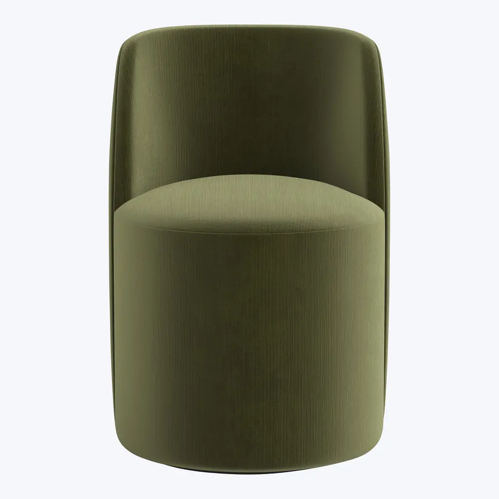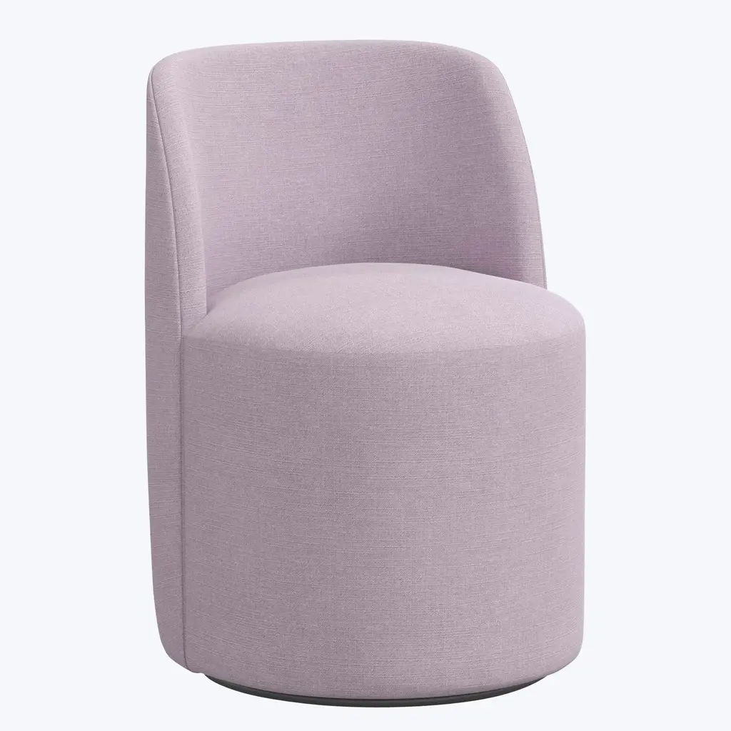 The Jessa Swivel Dining Chair, an exclusive creation by abc carpet & home, combines timeless elegance with modern functionality. Handcrafted in the USA, this custom-made chair features a linen-textured upholstery blend that enhances its smooth, sculptural shape. Measuring 22" W x 24" D x 32" H with a 20" seat height, it offers versatile proportions suited to a variety of spaces. Designed with a rounded, body-hugging back and a deep cushioned seat, this armless swivel chair brings exceptional comfort to the dining table while maintaining a clean, sophisticated silhouette. This chair’s seamless swivel function adds a layer of practicality and ease, making it as dynamic as it is stylish. Perfectly suited for intimate gatherings or formal dining occasions, the Jessa Swivel Dining Chair embodies the ideal balance of comfort, utility, and timeless design. Elevate your dining room with this elegant barrel-style seating option, thoughtfully crafted to blend classic design with contemporary functionality.