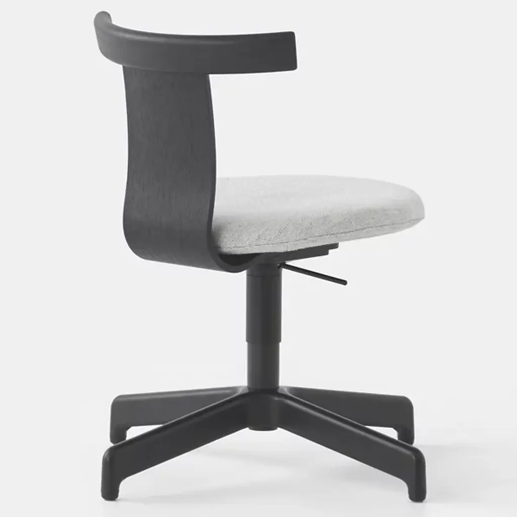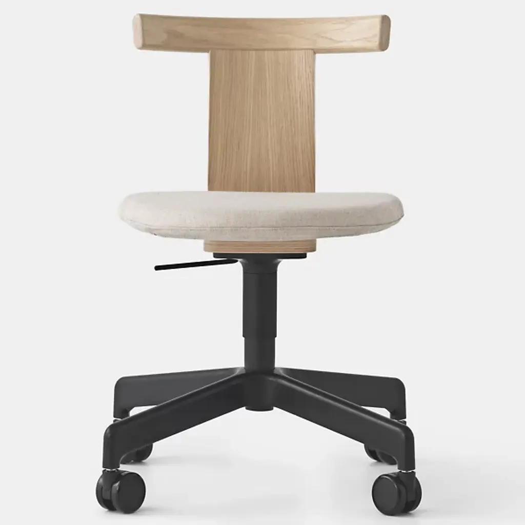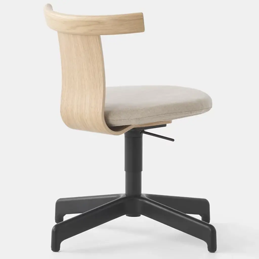 The Jiro Swivel Chair with Casters by Resident brings elegant simplicity and precision engineering to workplace seating. Designed by John Tree, its finely crafted oak veneer seat features a concentric design and low back, promoting smooth posture shifts and active pivoting. Resting on a signature 4-star die-cast aluminum base with smooth-rolling casters, it offers a 360-degree swivel with full return. Great for everywhere, from homes or offices to hospitality spaces, the refined design delivers responsive, dynamic movement with unforgettable style.