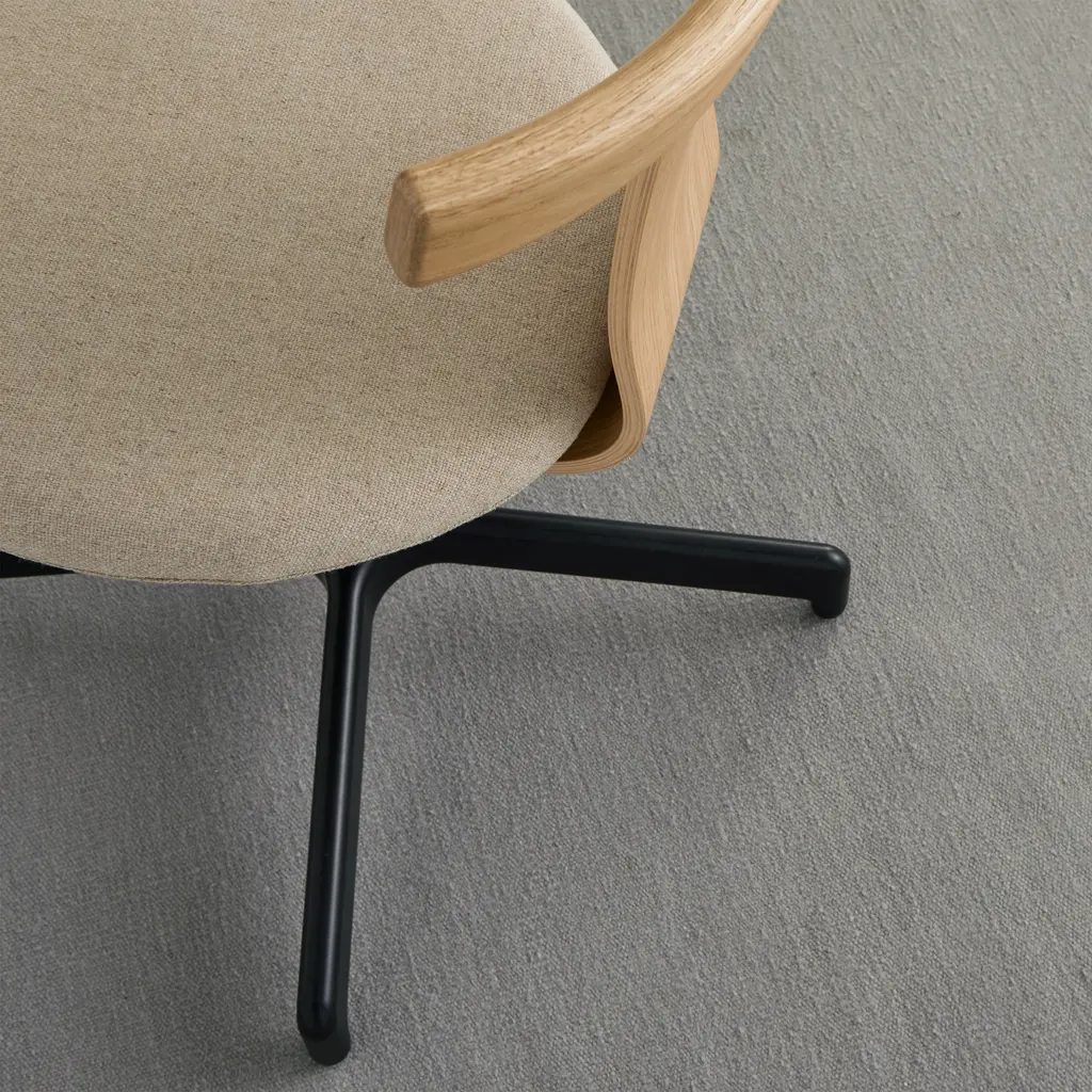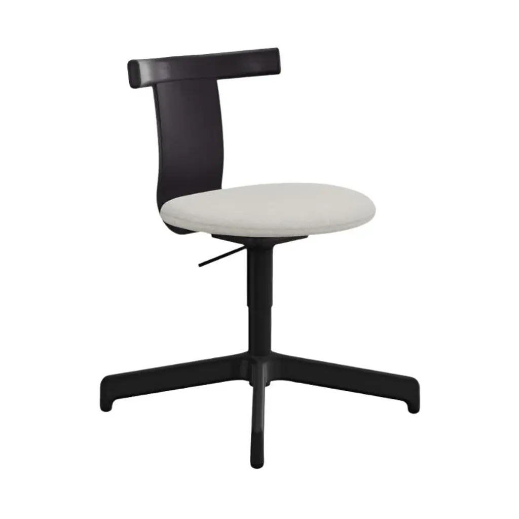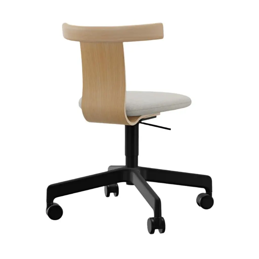 Elevate your office or home work space with the Jiro Swivel Upholstered Chair from Resident. Its finely balanced oak construction and 4-star die-cast base offer ergonomic and responsive support. The concentric design and low back promote active movement and comfort. Choose from various configurations including casters and height adjustability for the ultimate seating experience. Highlights