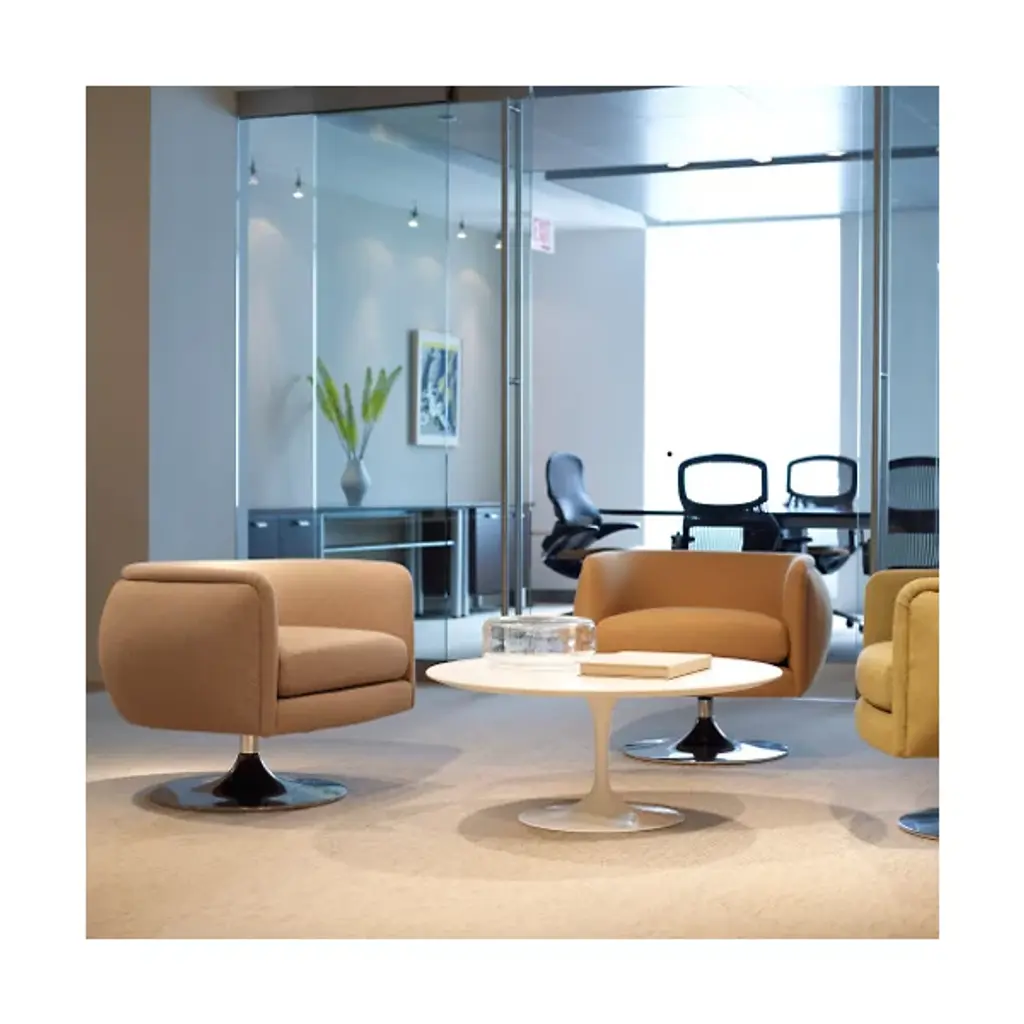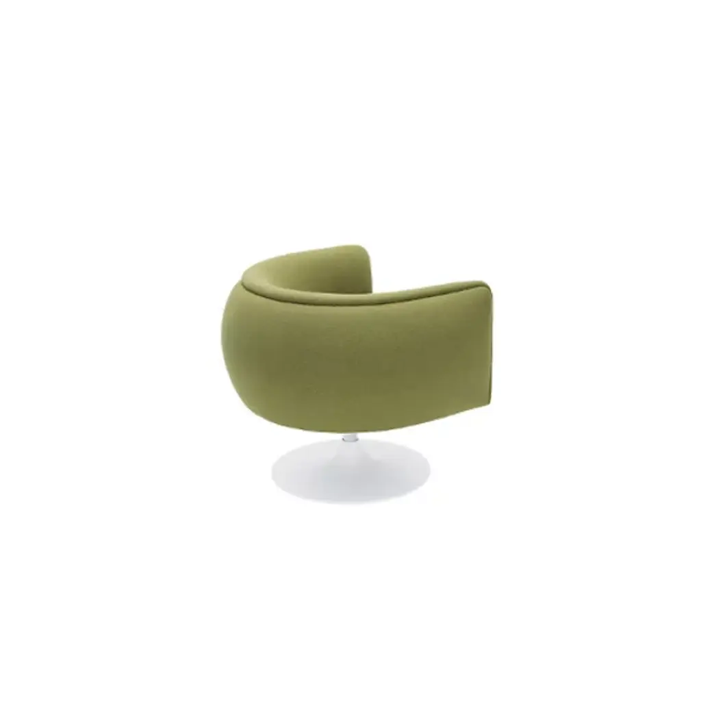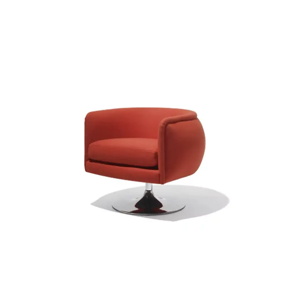 Works well in casual settings. The Joseph Paul D'Urso Swivel Lounge Chair by Knoll boasts a curved silhouette perched on a die-cast aluminum base. A fully upholstered panel and an interior solid wood and bent laminate plywood frame wrapped in plush urethane foam and polyester top layer offer comfortable, relaxed seating. Covered in railroaded textile upholstery, this chair features a 360-degree swivel mechanism with a height-adjustable pneumatic seat. A low profile cable operated lever allows easy adjustments and is flush-mounted on the underside of the chair for extra convenience.