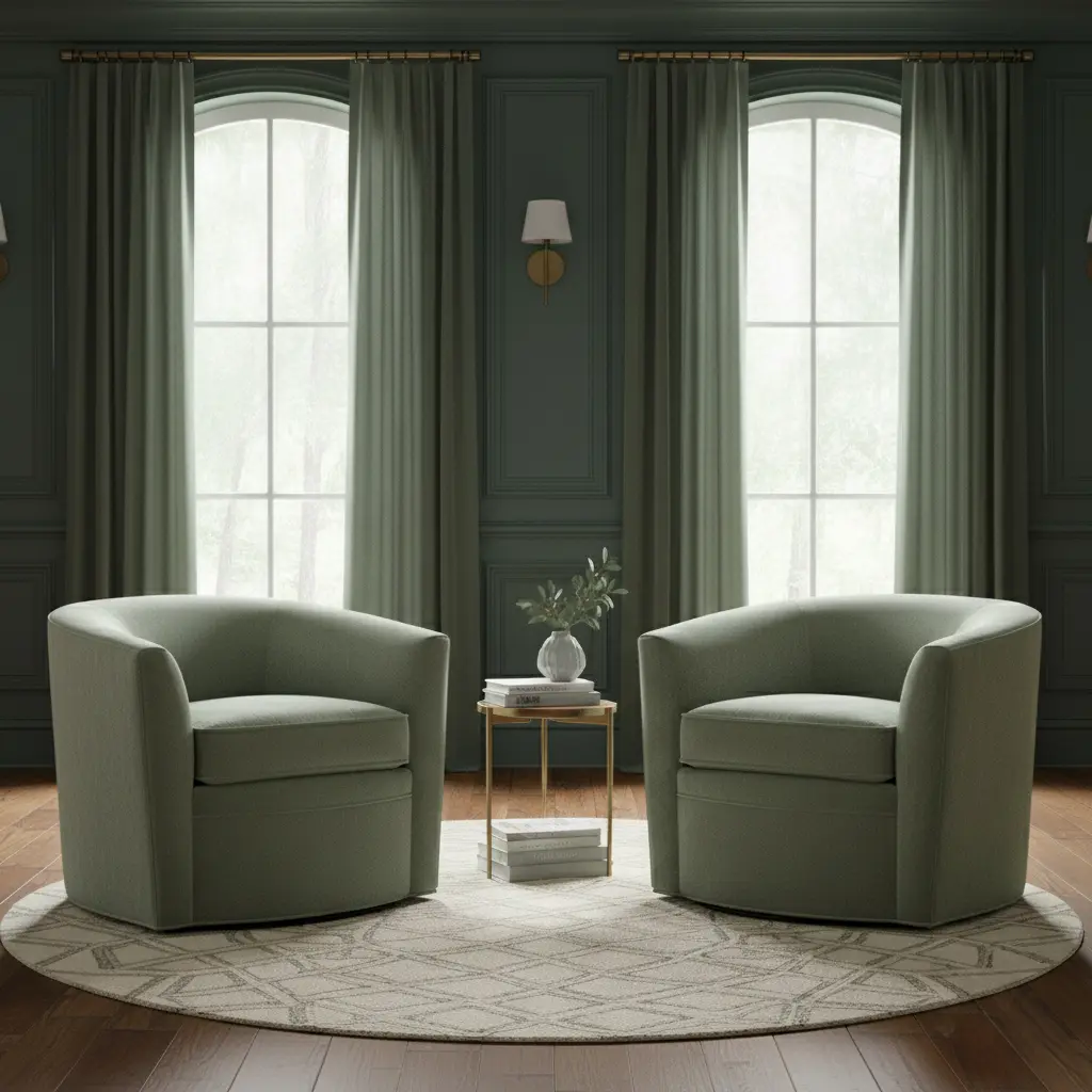 Introducing the Jovie Velvet Swivel Chair, a masterpiece of comfort and elegance. Crafted with a furniture-grade kiln-dried laminate hardwood frame, this chair promises durability and strength. The sinuous spring seat deck ensures a supportive and comfortable seating experience, while the classic cushion standard adds a touch of timeless sophistication. Perfect for any living space, the Jovie Velvet Swivel Chair combines style and functionality, making it an ideal choice for those who appreciate quality and design.