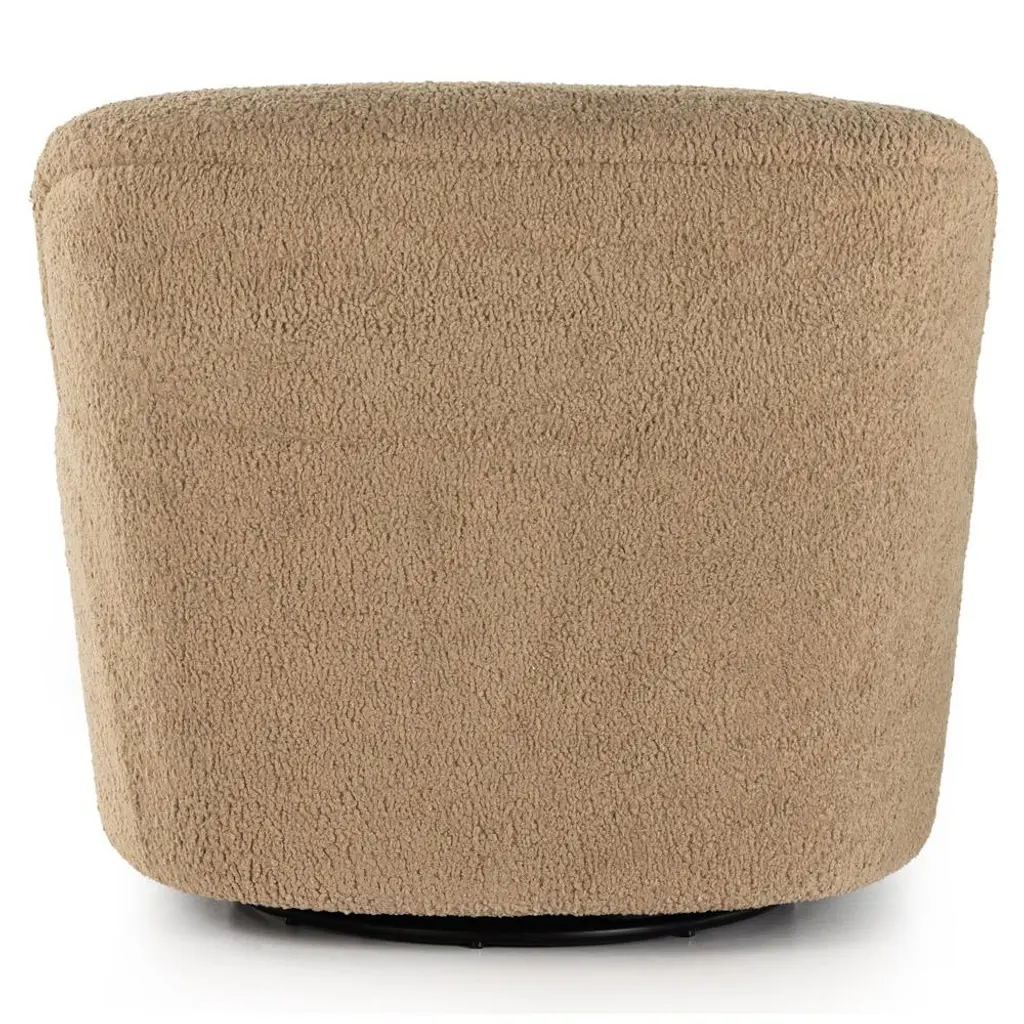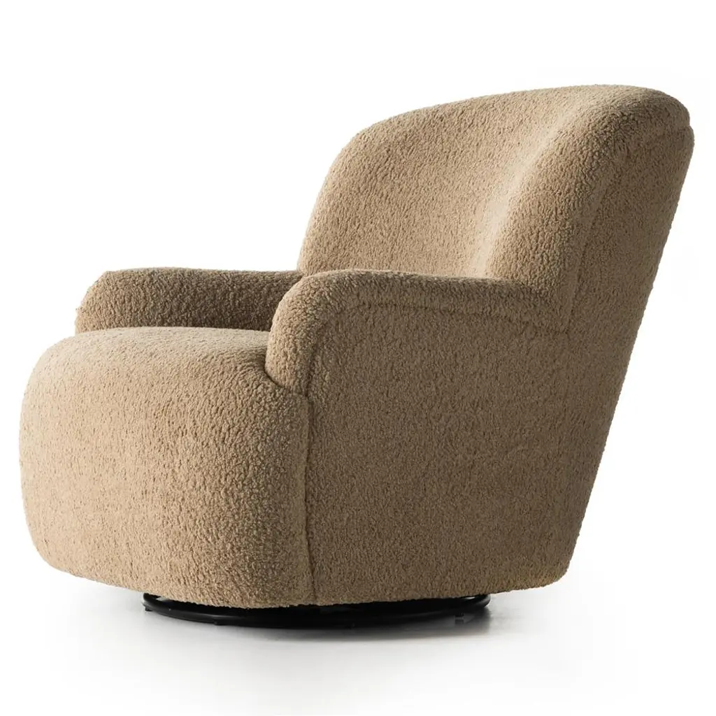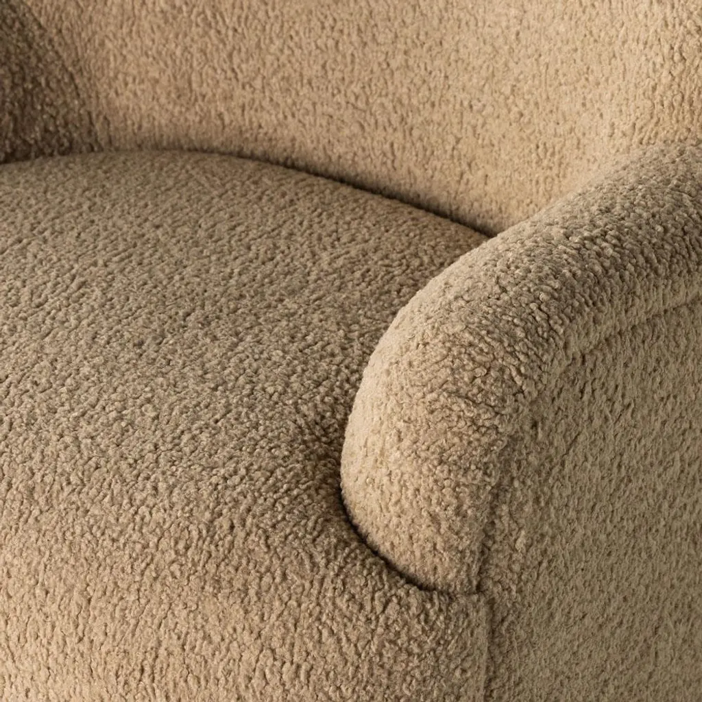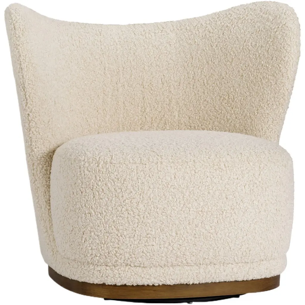 Our Kaden Modern Brown Upholstered Boucle Wood Frame Wingback Swivel Arm Chair is equal parts comfort and style thanks to its trendy boucle upholstery. This designer accent chair features a high wing back with softly rolled arms and a 360-degree swivel.