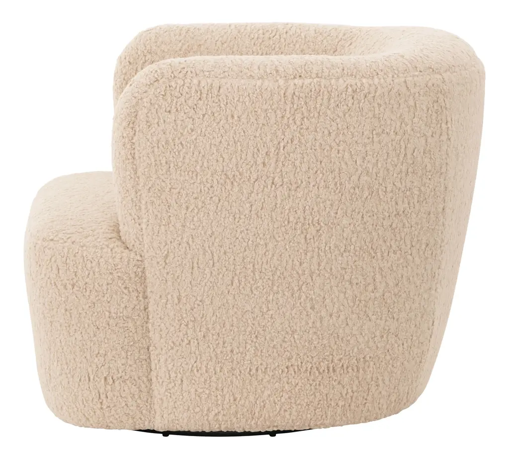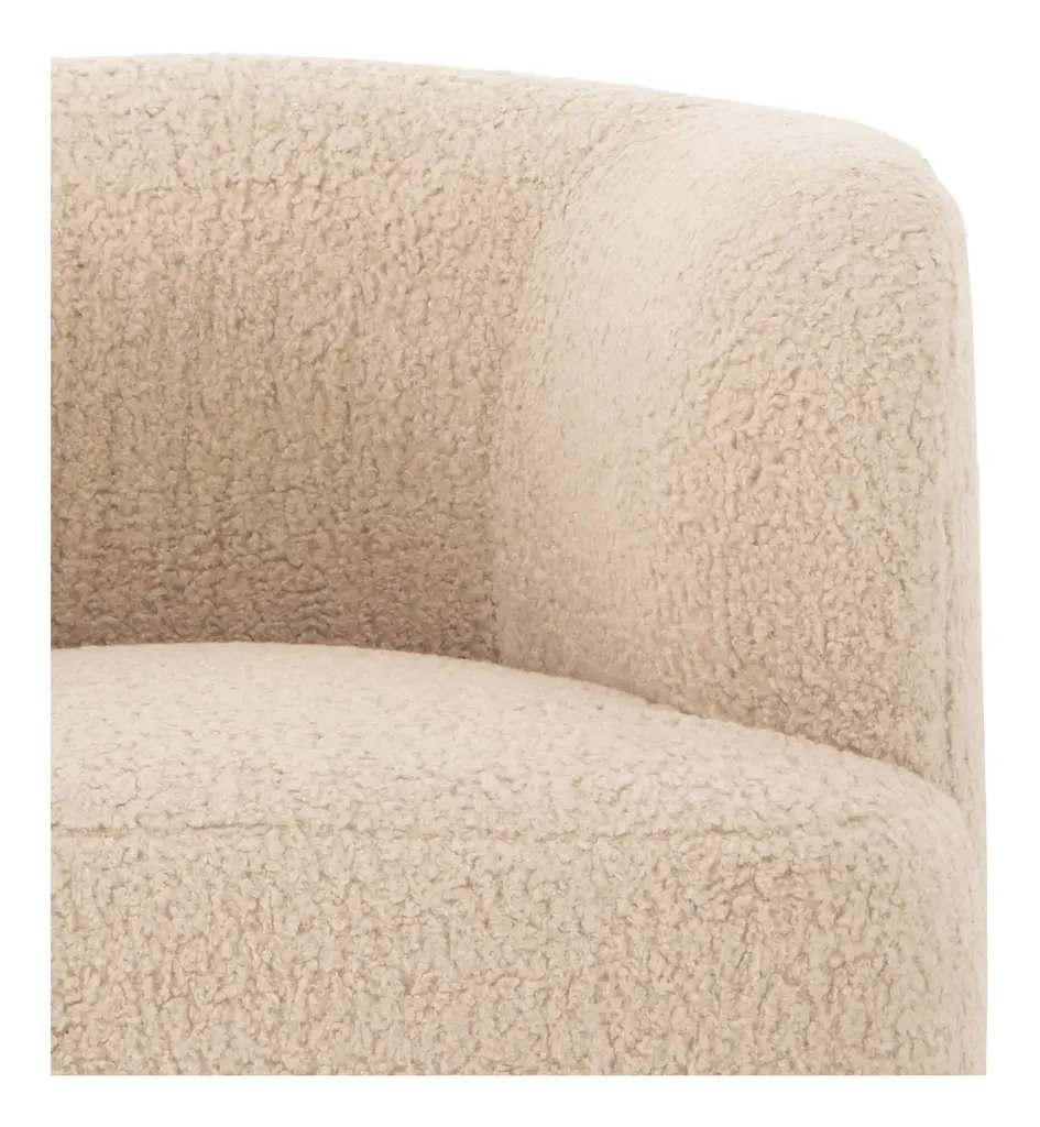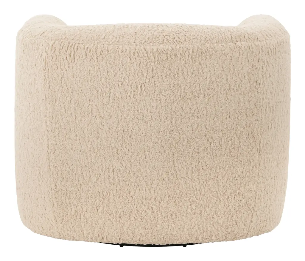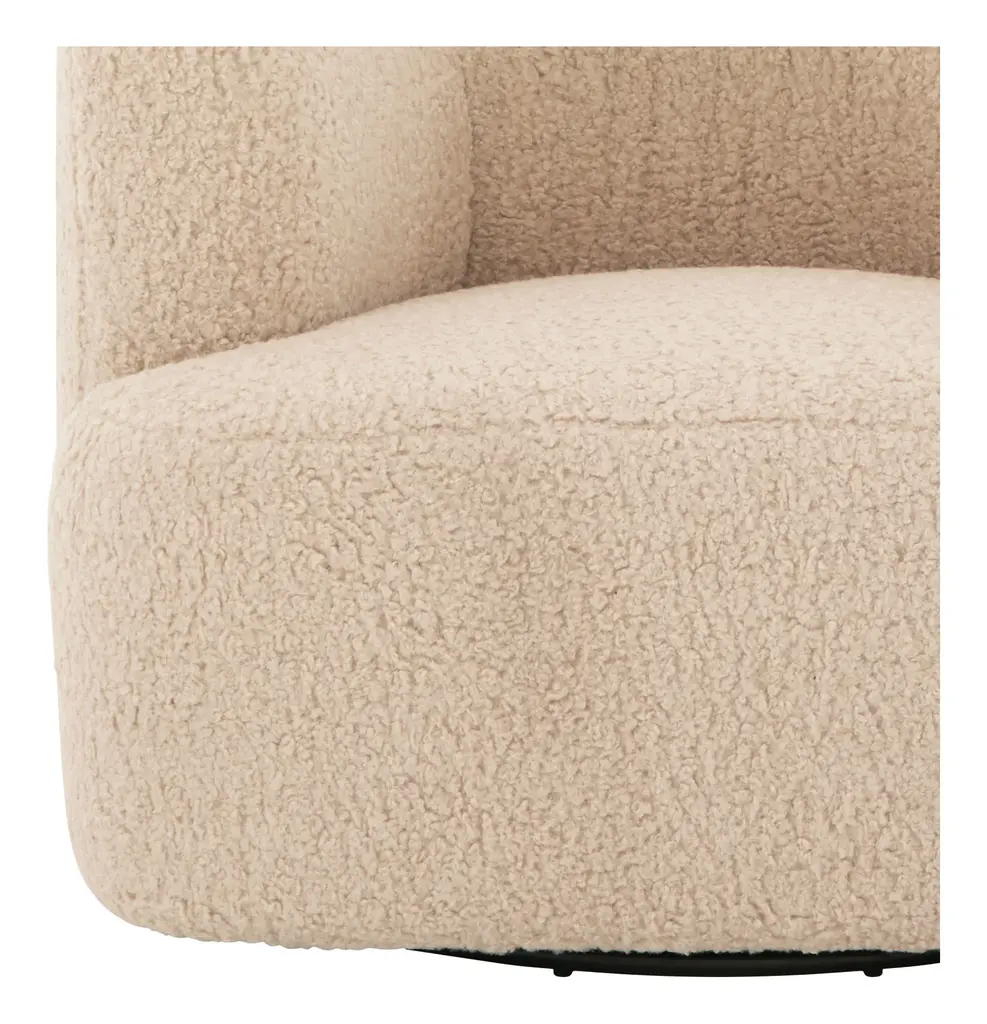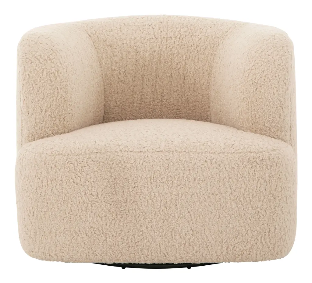 Turn, baby, turn! Our cozy-chic Kegan Chair will have you lounging in style with its enveloping, rounded shape, high sheltering armrests and deep, plush yet supportive seat. Not to mention its pièce de résistance — that cleverly hidden 360-degree swivel base! It’s the perfect spot to kick back in style, as well as the perfect addition to any casual-cool modern living room. •upholstered in telluride champagne faux shearling •fabric content: 100% polyester•hidden 360 swivel base •sustainable construction •made in the USA Dimensions •36.5"W x 37"D x 29"H•seat width: 16 - 22" •seat depth: 25.25"•seat height: 17"