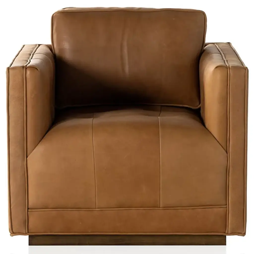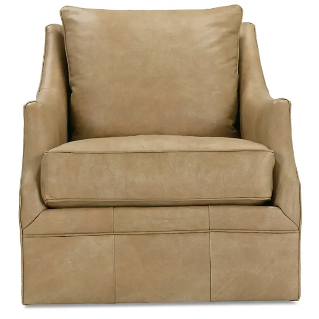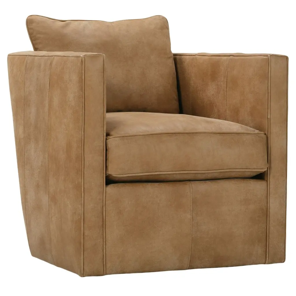 The Kiera Swivel Chair from Four Hands features top-grain leather that wraps around clean-angled arms, giving it a sleek, tailored appearance. Blind tufting adds a subtle texture and enhances its sophisticated design. The 360-degree swivel base introduces a modern touch, making this seating option both stylish and functional. Ideal for any contemporary space, it combines classic craftsmanship with a fresh and updated twist, offering both comfort and a refined aesthetic.
