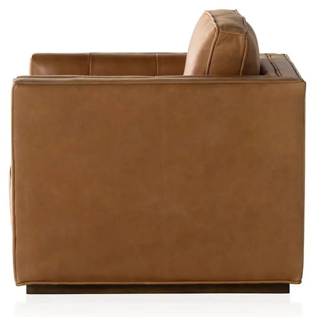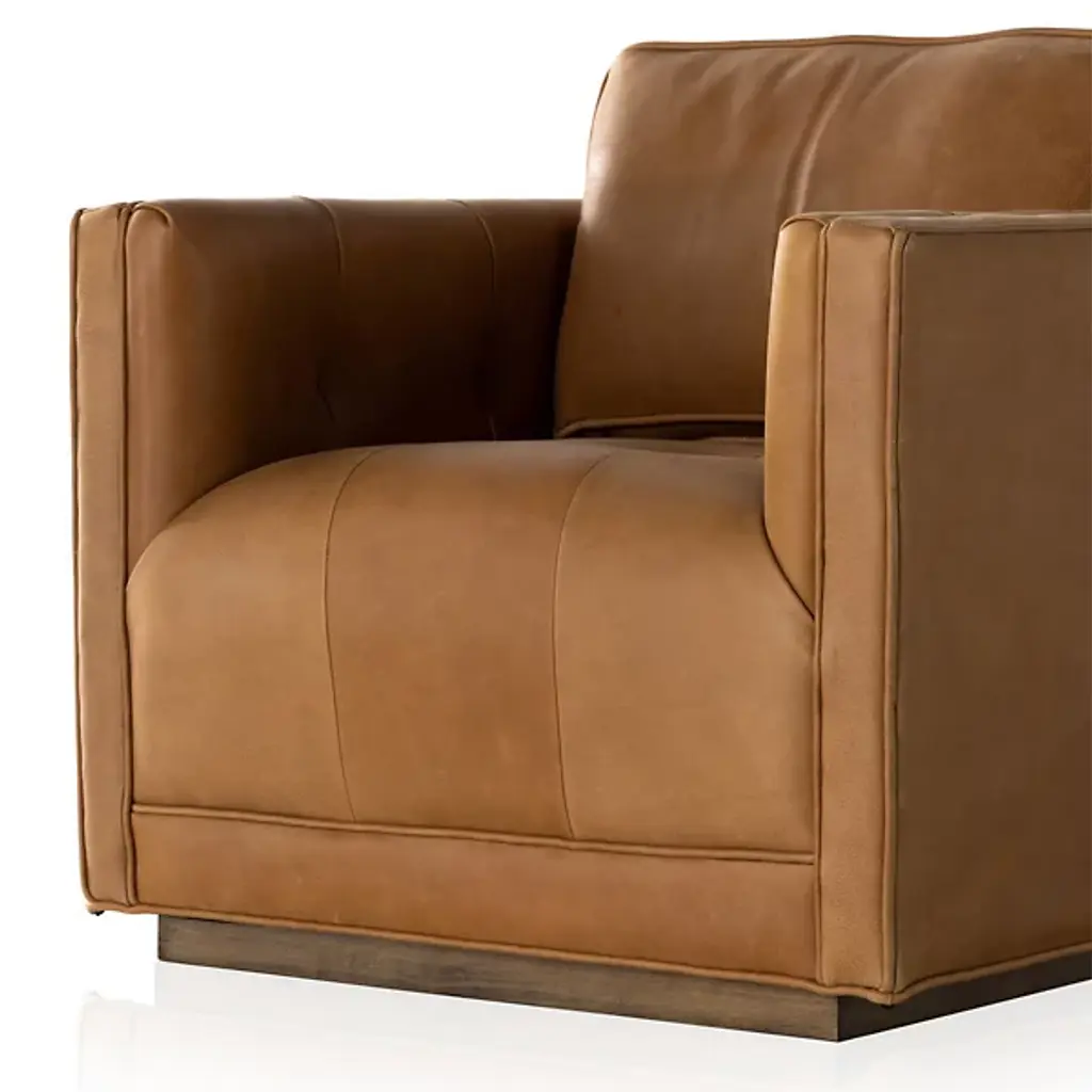 The Kiera Swivel Chair from Four Hands features top-grain leather that wraps around clean-angled arms, giving it a sleek, tailored appearance. Blind tufting adds a subtle texture and enhances its sophisticated design. The 360-degree swivel base introduces a modern touch, making this seating option both stylish and functional. Ideal for any contemporary space, it combines classic craftsmanship with a fresh and updated twist, offering both comfort and a refined aesthetic.