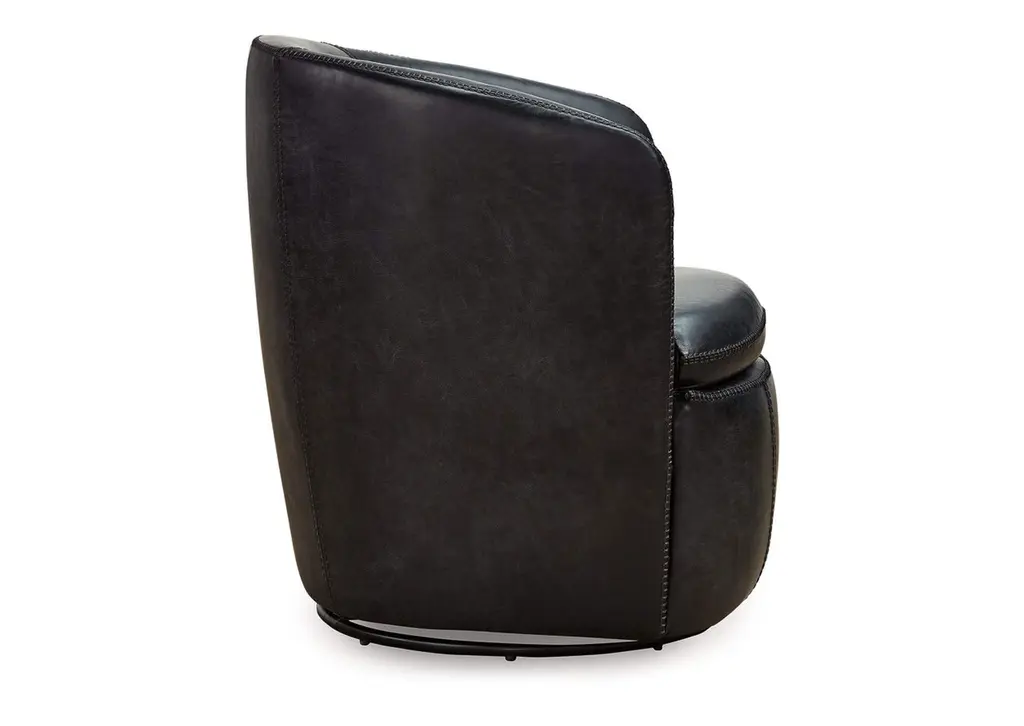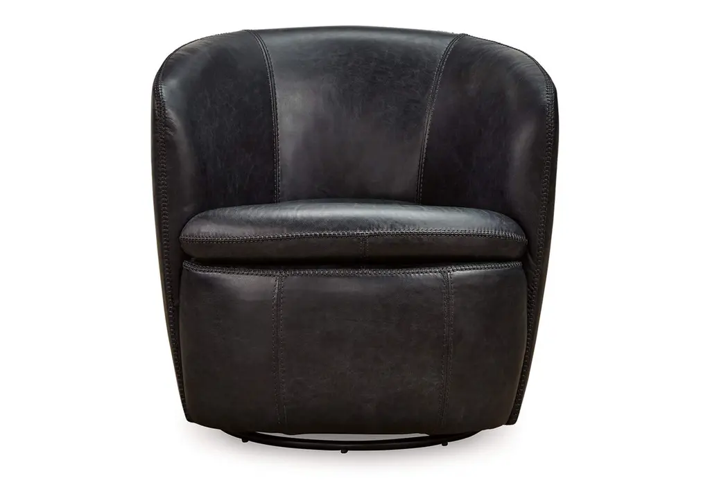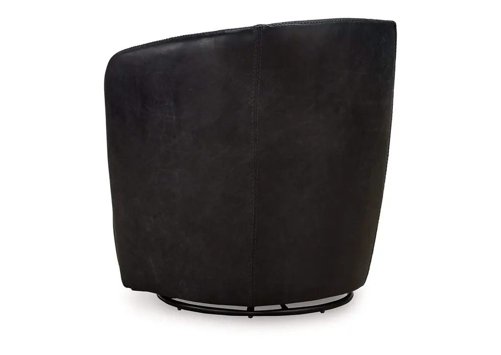 Experience the perfect blend of well-appointed comfort and stylish design with the Kierreys swivel accent chair. Its supple leather and barrel back invite you to settle in and relax, while the sleek 360-degree swivel base keeps you engaged with conversations. Designed with functional luxury in mind, it’s the ideal fit for your contemporary lifestyle. Weight 78.000 lbs. (35.1kgs.)