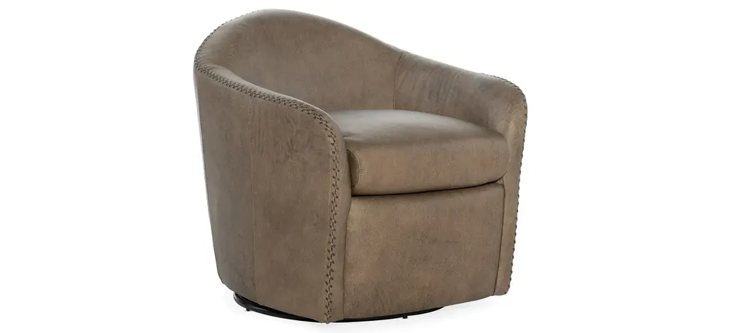 Experience the perfect blend of well-appointed comfort and stylish design with this swivel accent chair. Its supple leather and barrel back invite you to settle in and relax, while the sleek 360-degree swivel base keeps you engaged with conversations. Designed with functional luxury in mind, it’s the ideal fit for your contemporary lifestyle. - Product Details provided by Manufacturer, Slumberland not responsible for errors in information.