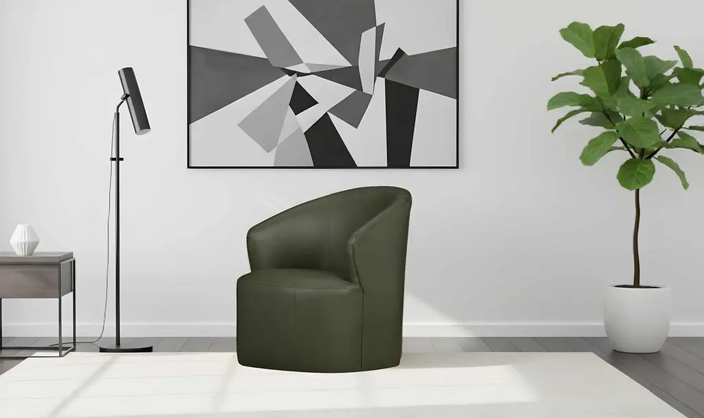Klaussner Leather Ivy Green Swivel Chair With Ultralux Cushion