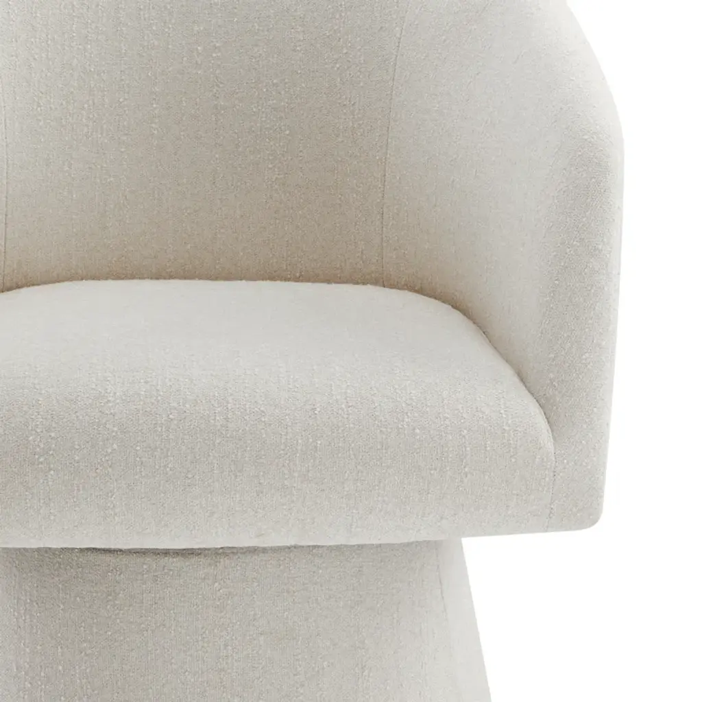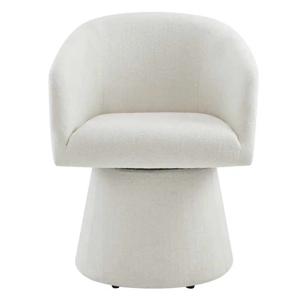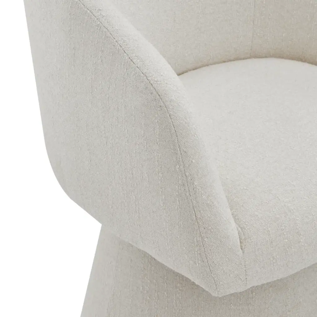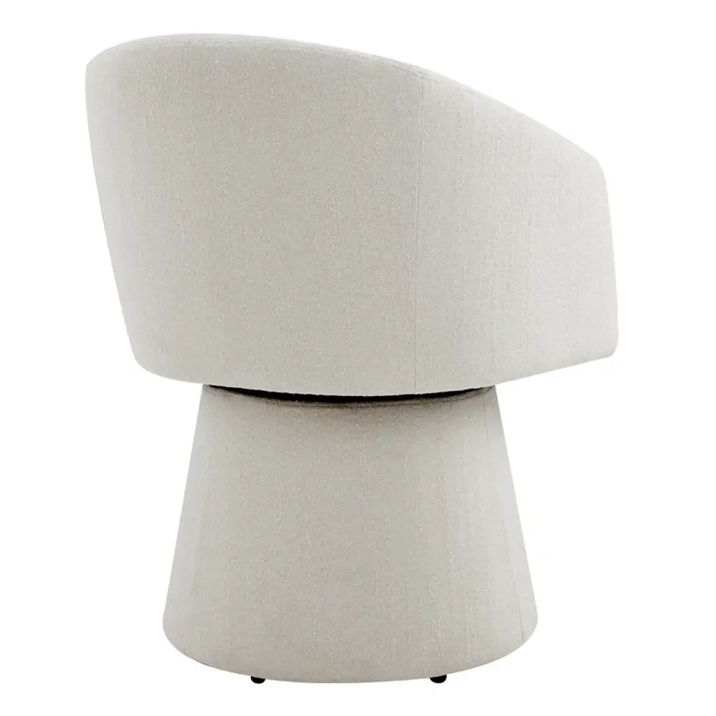 Swivel in style. These barrel armchairs wrap you in comfort with their curved backs, spacious seats, and high-density foam cushioning. Each one sits on a flared base with a smooth 360-degree swivel, offering both function + sculptural presence. Set of two.