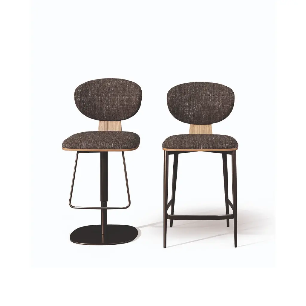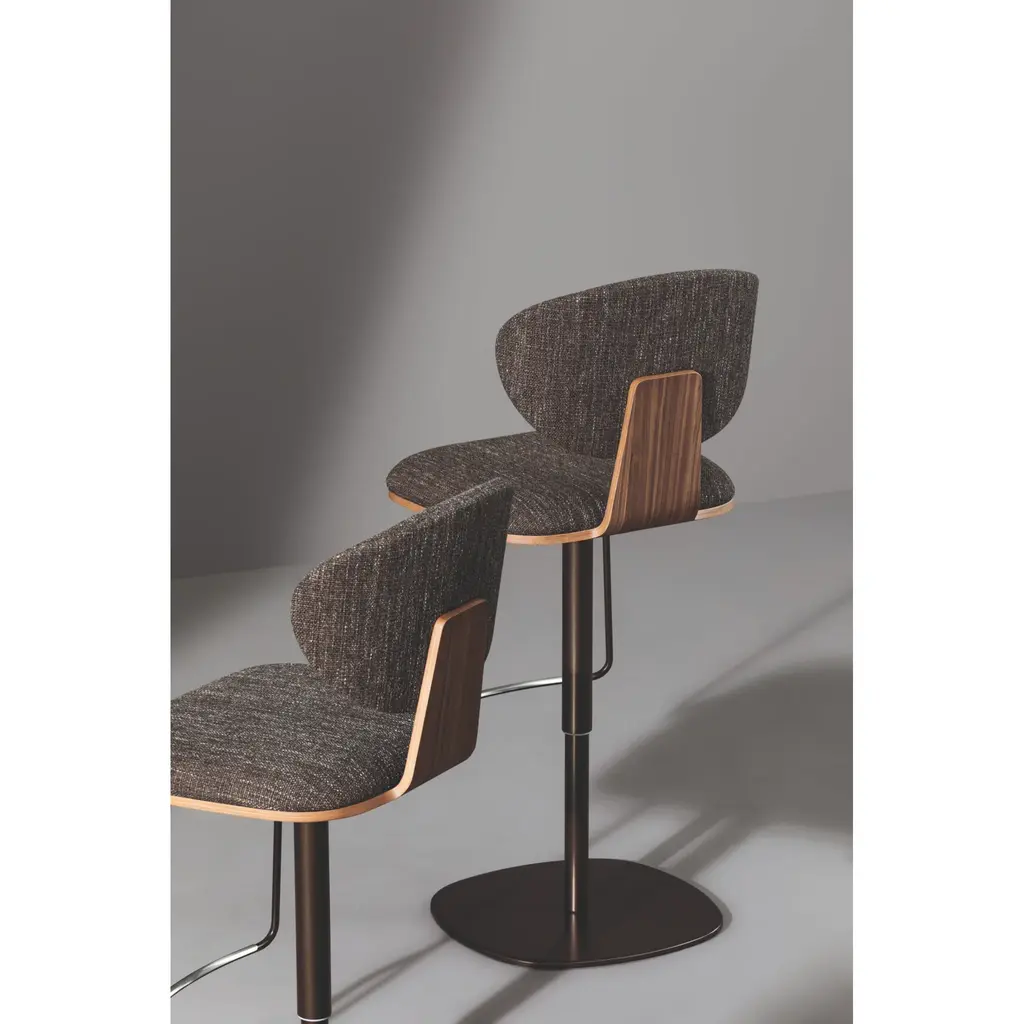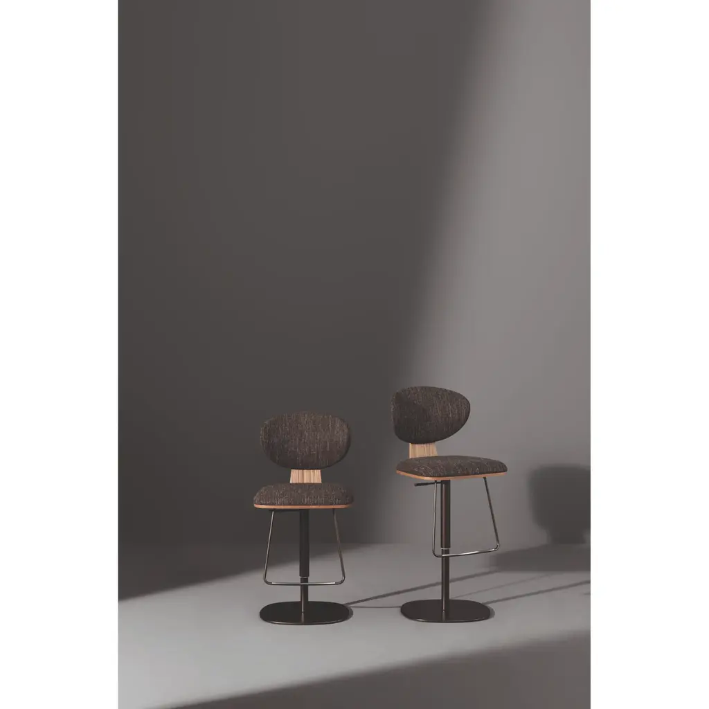 Inspired by contemporary Nordic design, the Olos collection is enriched by the addition of Olos too, a stool that stands out for its elegant yet essential design. The curved laminated wood shell, leitmotif of the family, is combined with the seat and backrest in molded polyurethane and offers timeless comfort. Available in the four-legged version, in two different heights or with a height-adjustable swivel metal base, the Olos too stool easily adapts to domestic and hospitality contexts.