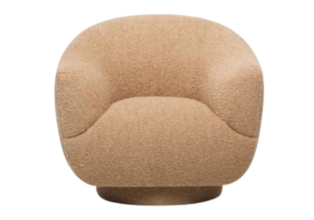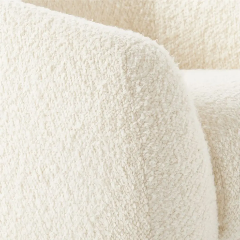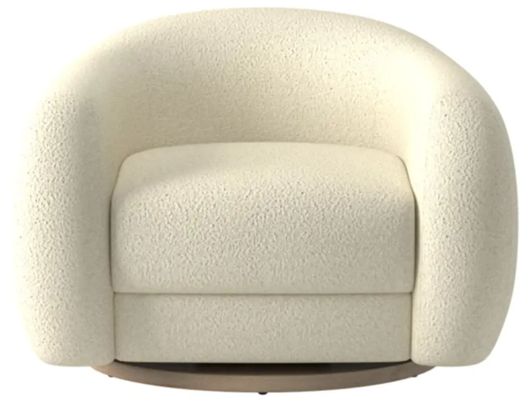 Boucle swivel chair by Los Angeles-based designer Ross Cassidy strikes the perfect balance between modern style and cloud-like comfort. Floating atop a natural oak swivel base, the curved back hugs a generously cushioned seat. Developed exclusively for CB2, It's easily one of our most comfortable swivel chairs to date. CB2 exclusive.