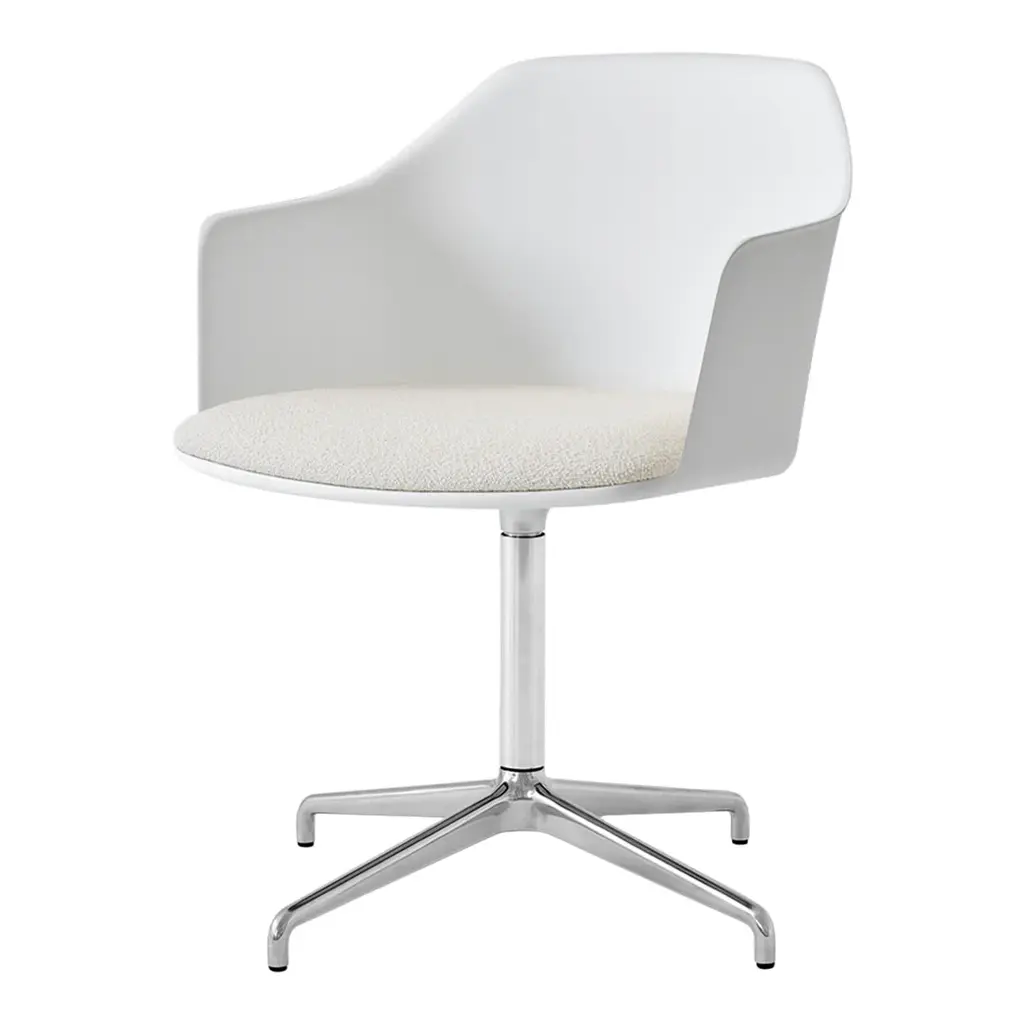 HAY’s Layout chair by French designer Julien Renault is a delightfully versatile piece where smooth, minimalist forms meet sustainable materials. Perfect for both dining settings, workspaces and meeting rooms, the Layout 232 armchair features an oak veneer seat, a shell made from recycled polypropylene and a 4-star swivel base in aluminum. The Layout chair collection includes models for dining, working and lounging, offered in a broad range of colors and material options. Designed for both home and public environments, the chairs are characterized by their open-back design, which enhances comfort while giving the silhouette a light, airy feel. Created with circularity in mind, all components of the Layout chairs can be disassembled for refurbishment and are fully recyclable at the end of their lifecycle.