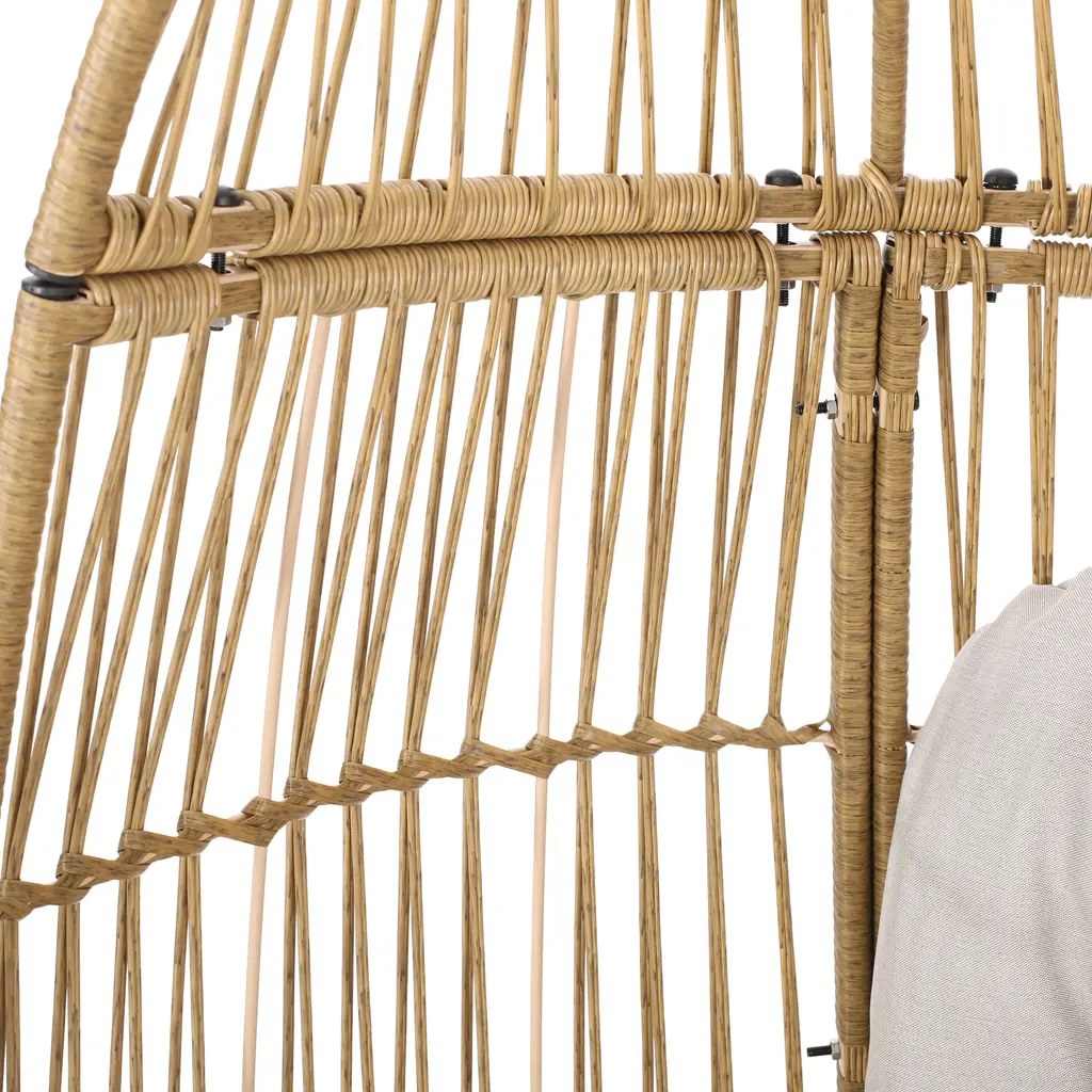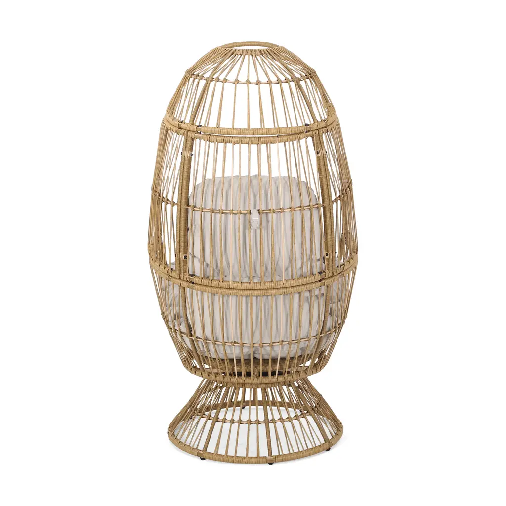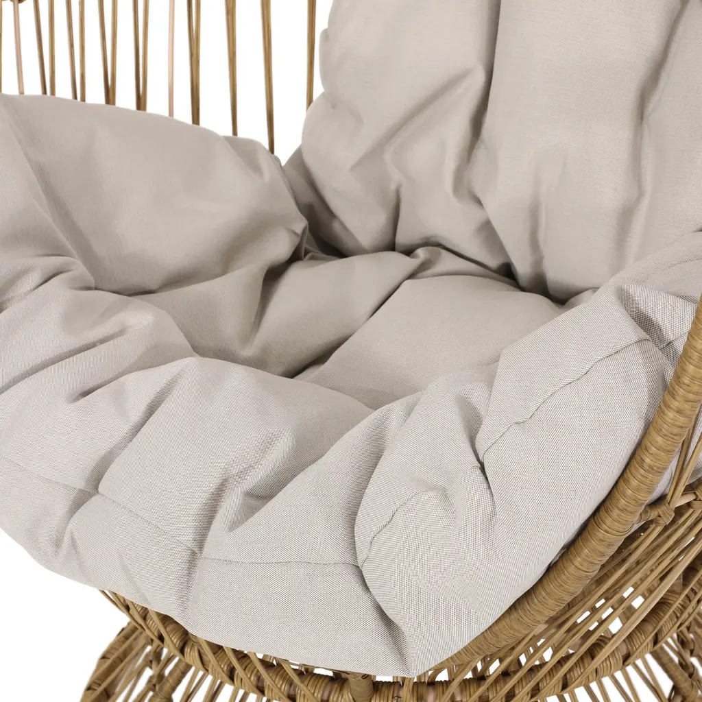 Designed for both style and comfort, the patio egg chair brings a unique and cozy seating option to your outdoor space. Its basket shape envelops you in a soothing embrace, perfect for relaxation. The durable polyethylene rattan construction ensures long-lasting beauty and a versatile look that complements any outdoor setting. Featuring a convenient swivel function, this chair allows for easy movement while enjoying your surroundings. With plush, water-resistant cushions, it offers a comfortable lounging experience while remaining easy to maintain.