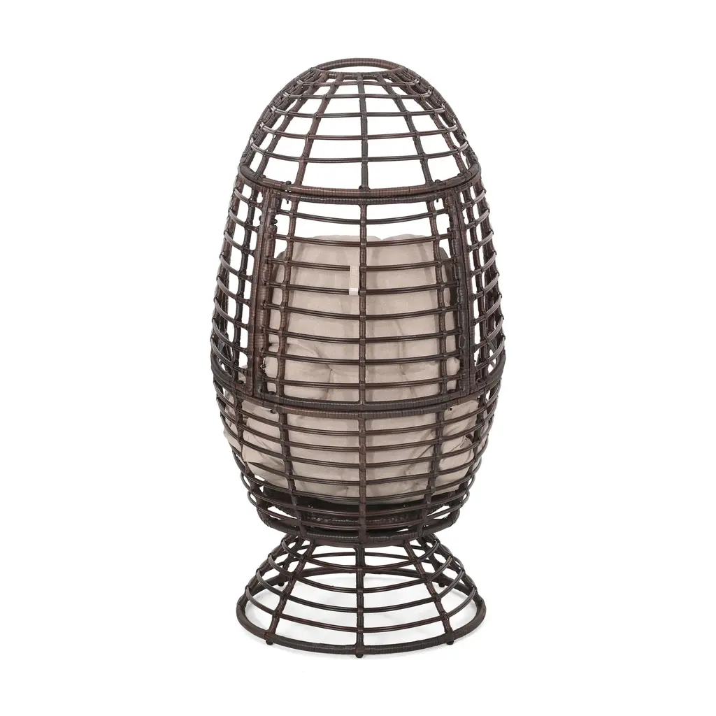 Lazulite Outdoor Egg Chair With Water-Resistant Cushion And Swivel Function - Dark Brown