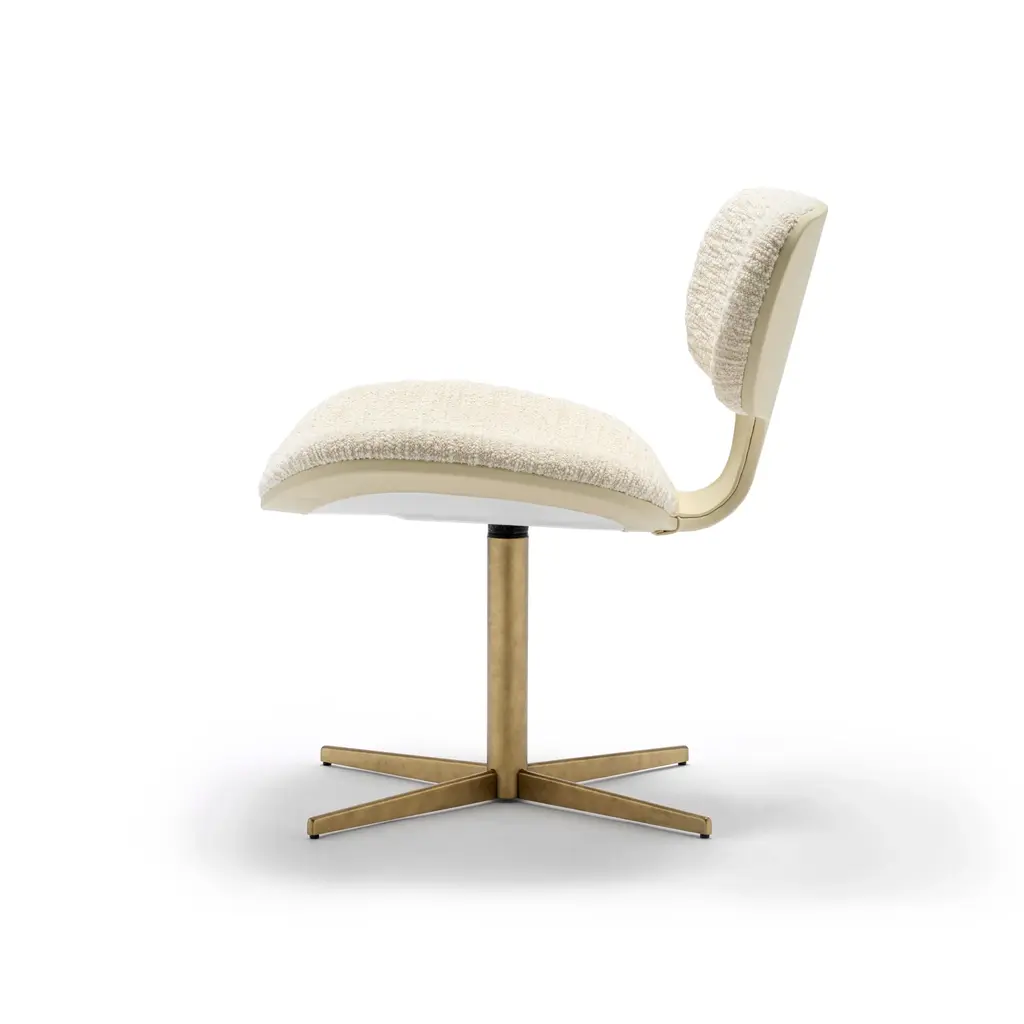 Rest is the lounge chair with a swivel structure made of steel in various Fasem finishes. The seat and backrest are padded: externally covered in full-grain or high-quality Fasem leather, and internally in high-quality Fasem leather or Dedar® Atlas fabric. It adds an elegant presence in both residential relaxation areas and representative environments.