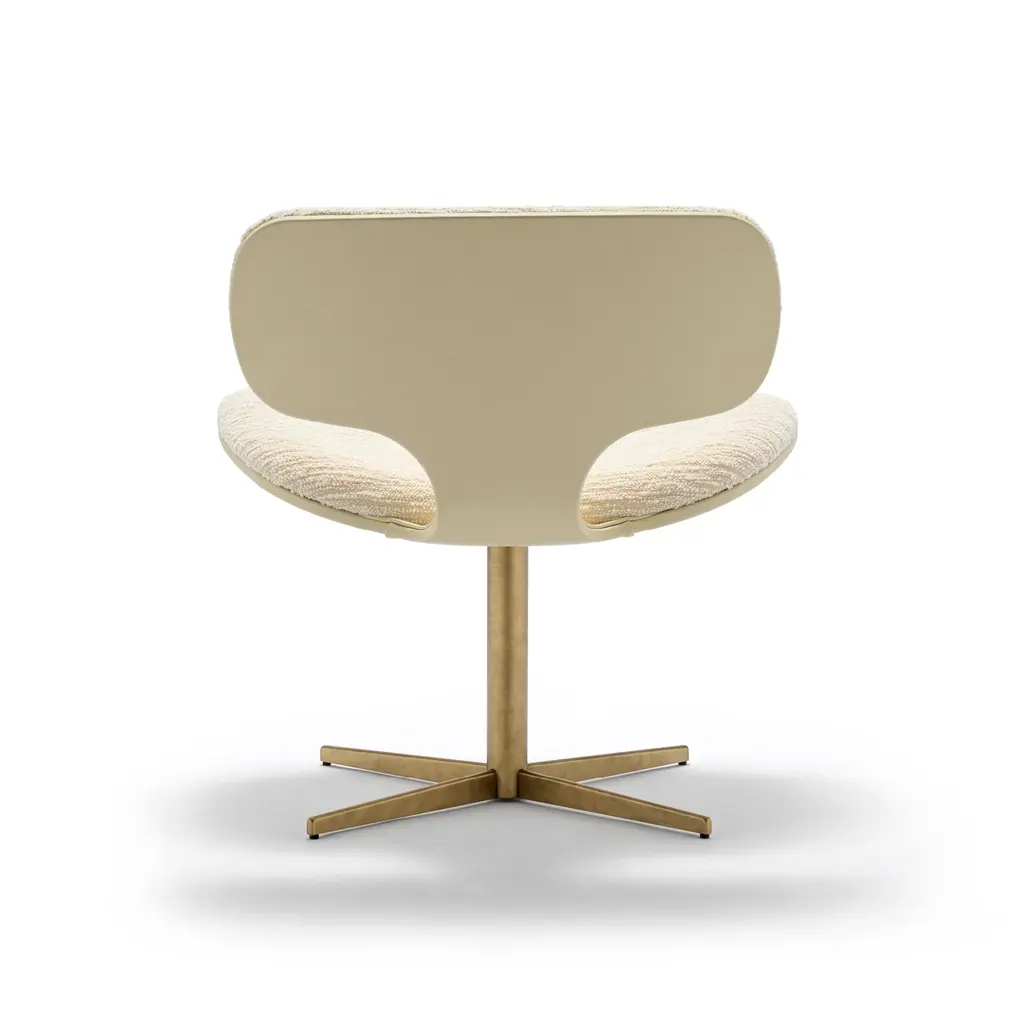 Rest is the lounge chair with a swivel structure made of steel in various Fasem finishes. The seat and backrest are padded: externally covered in full-grain or high-quality Fasem leather, and internally in high-quality Fasem leather or Dedar® Atlas fabric. It adds an elegant presence in both residential relaxation areas and representative environments.