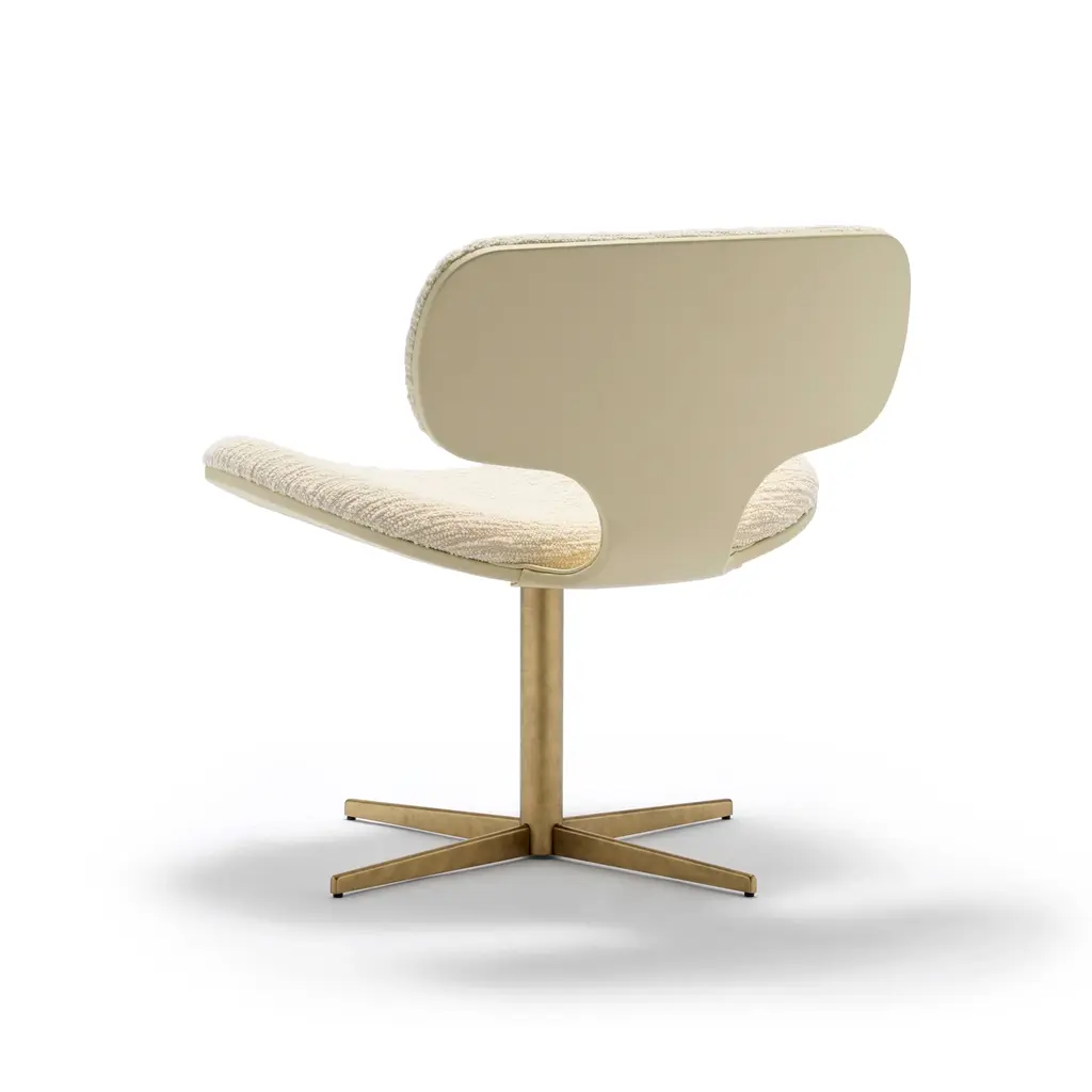 Rest is the lounge chair with a swivel structure made of steel in various Fasem finishes. The seat and backrest are padded: externally covered in full-grain or high-quality Fasem leather, and internally in high-quality Fasem leather or Dedar® Atlas fabric. It adds an elegant presence in both residential relaxation areas and representative environments.