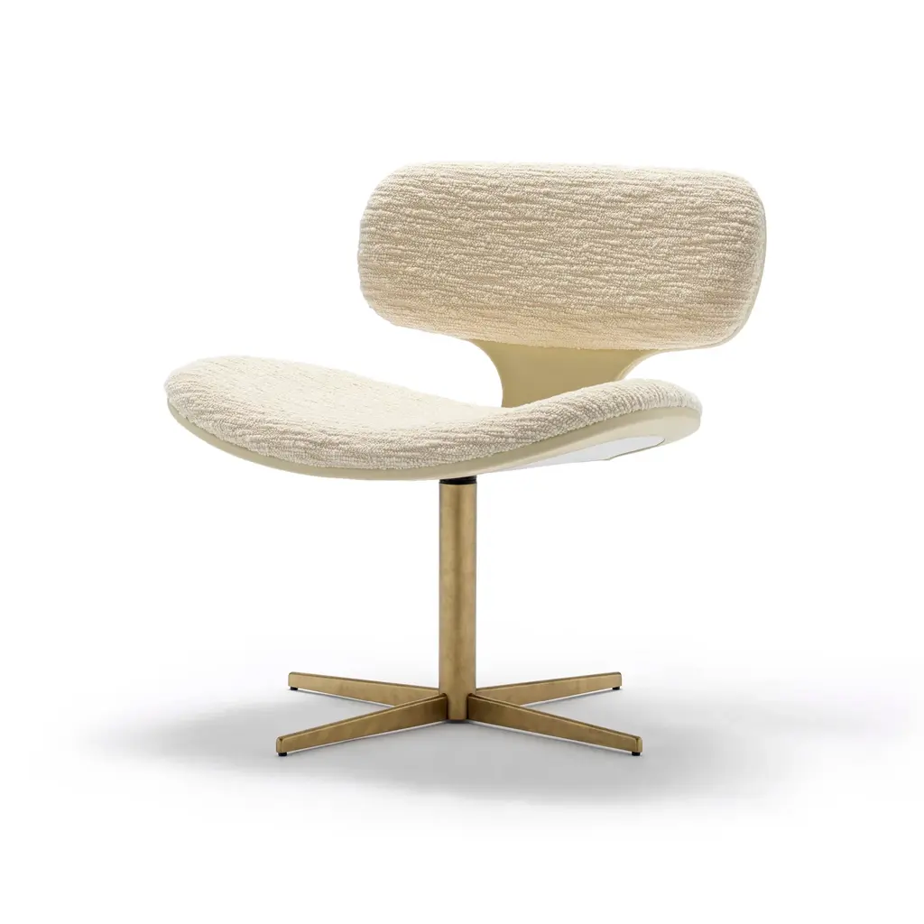 Rest is the lounge chair with a swivel structure made of steel in various Fasem finishes. The seat and backrest are padded: externally covered in full-grain or high-quality Fasem leather, and internally in high-quality Fasem leather or Dedar® Atlas fabric. It adds an elegant presence in both residential relaxation areas and representative environments.