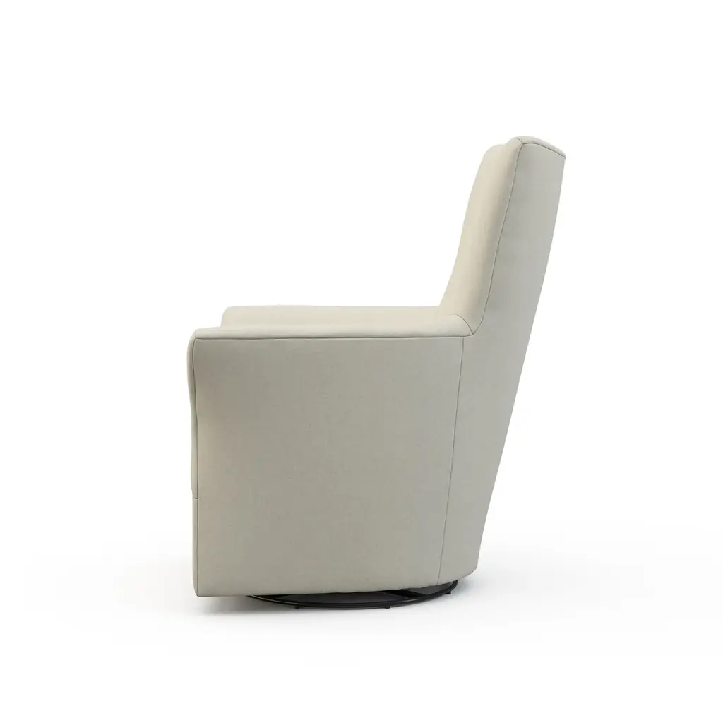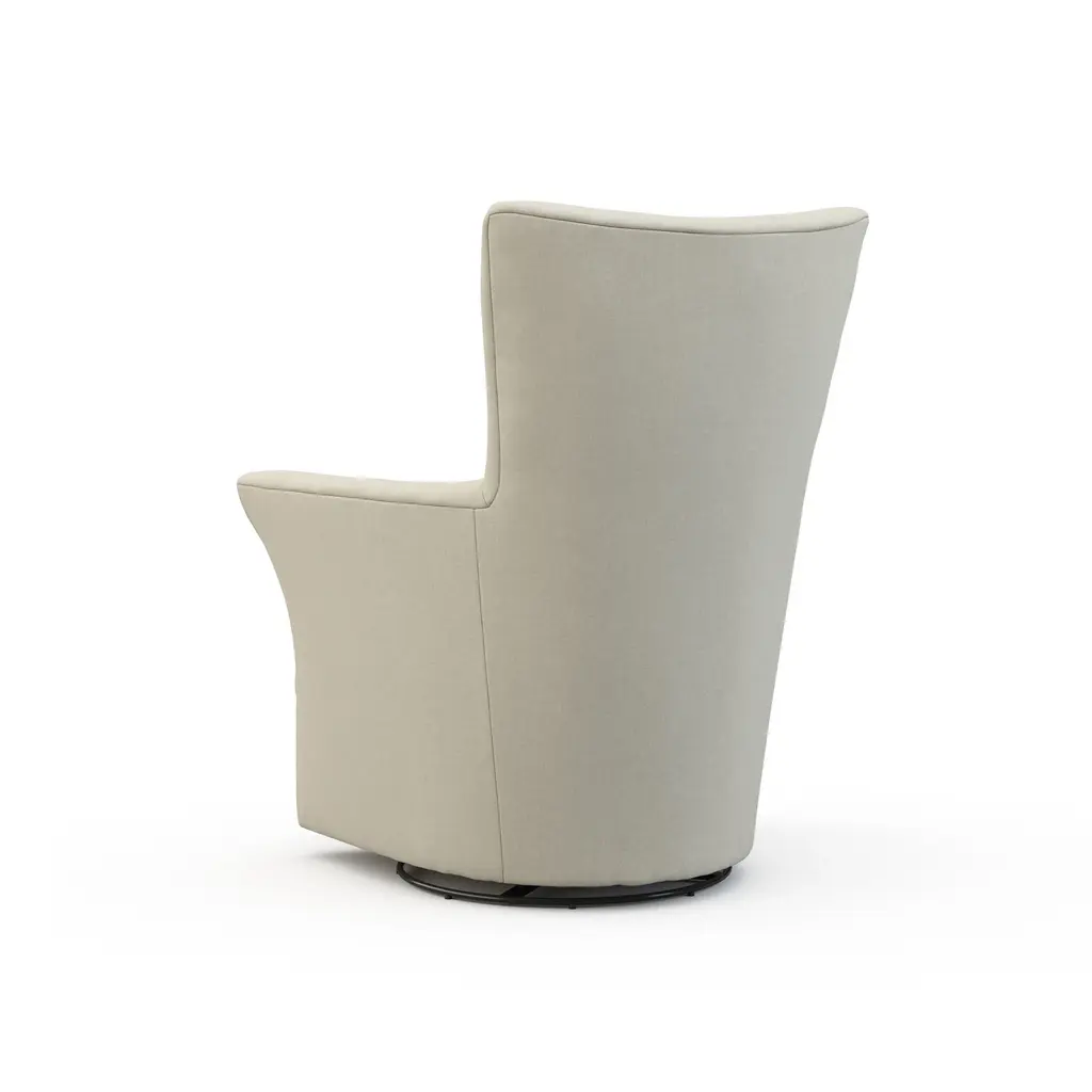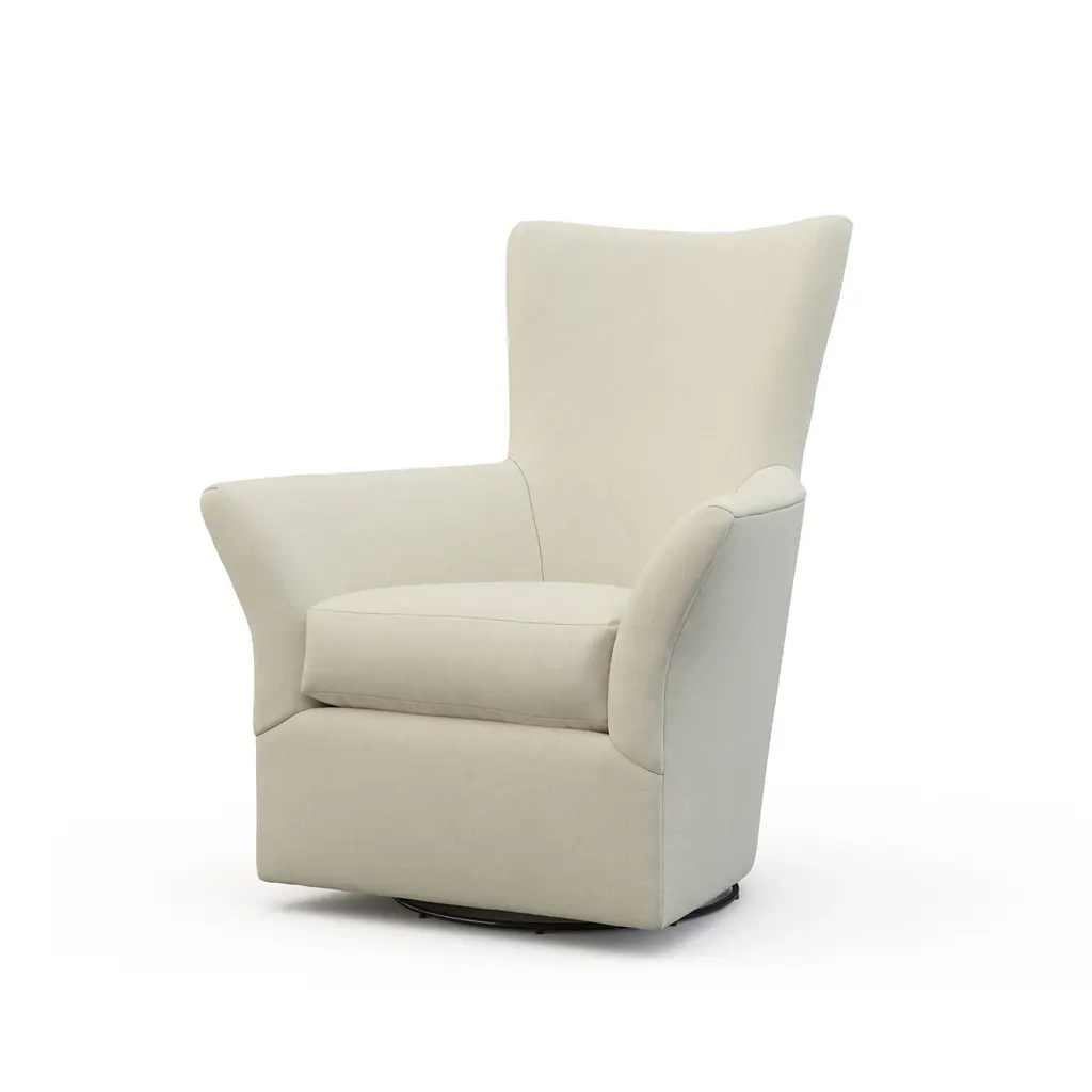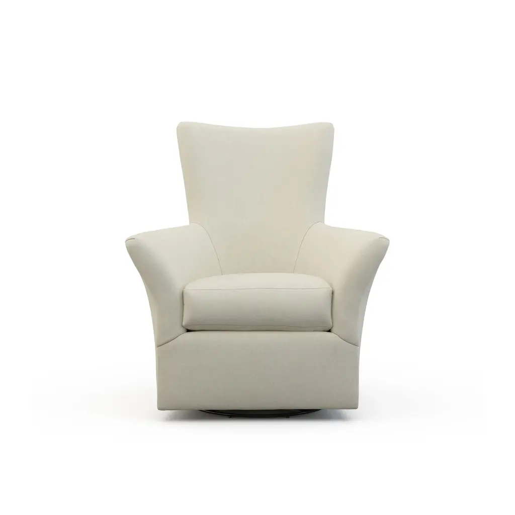 The Levi Chair delivers relaxed confidence with its graceful curves and tailored stance. Its flared arms and high back create an inviting silhouette, while the concealed swivel base adds a practical twist. Whether styled solo or in pairs, this chair invites conversation and comfort in equal measure. Ships In 8-10 Weeks Swivel base Tight back One loose seat cushion As Shown Fabric: Rayburn Oatmeal If you choose to purchase COM, once you have placed your order a customer service rep will contact you regarding where to send your fabric. Please note that current lead time is 17-19 weeks once your fabric arrives at the factory, and if unused fabric is under 1.5 yards, it cannot be sent back to you.This product can be special ordered in additional fabrics, leathers, and cushion fillings. Click here to email us for for additional information about special ordering.This image is for illustrative purposes only. The colors shown are accurate within the constraints of lighting, photography, and the color accuracy of your screen.
