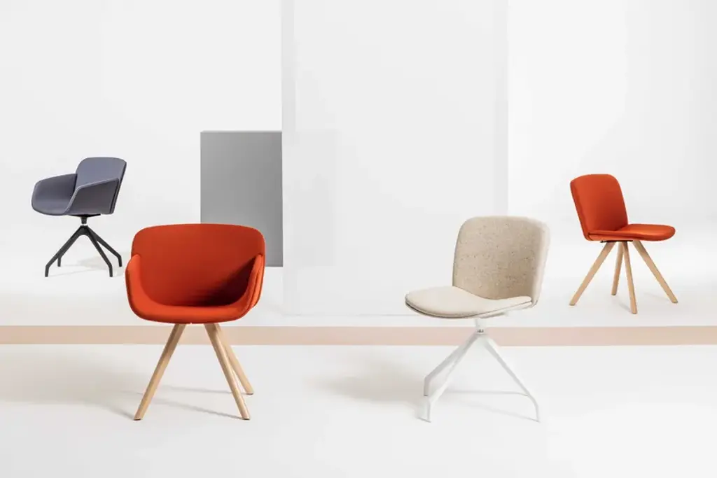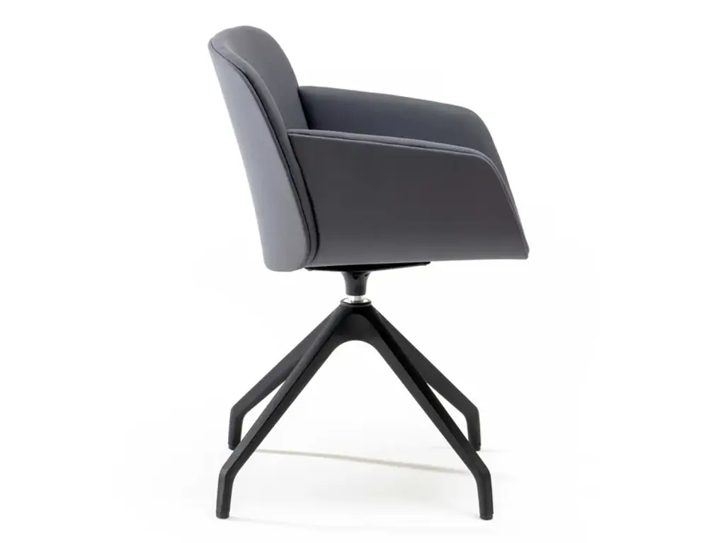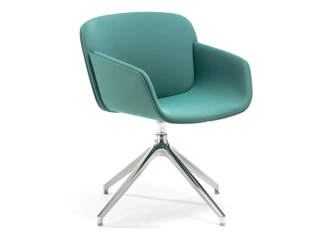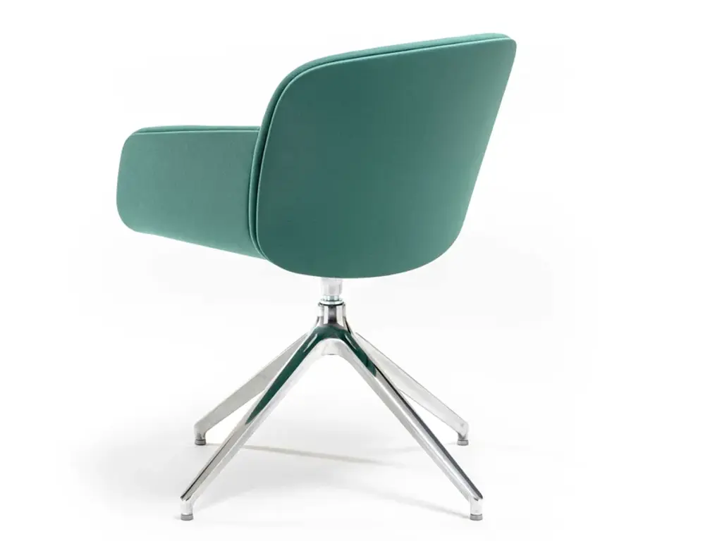 Libera Soft is a pedestal swivel chair made of upholstered polyurethane foam with a metal frame.