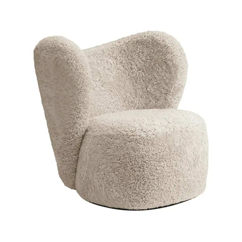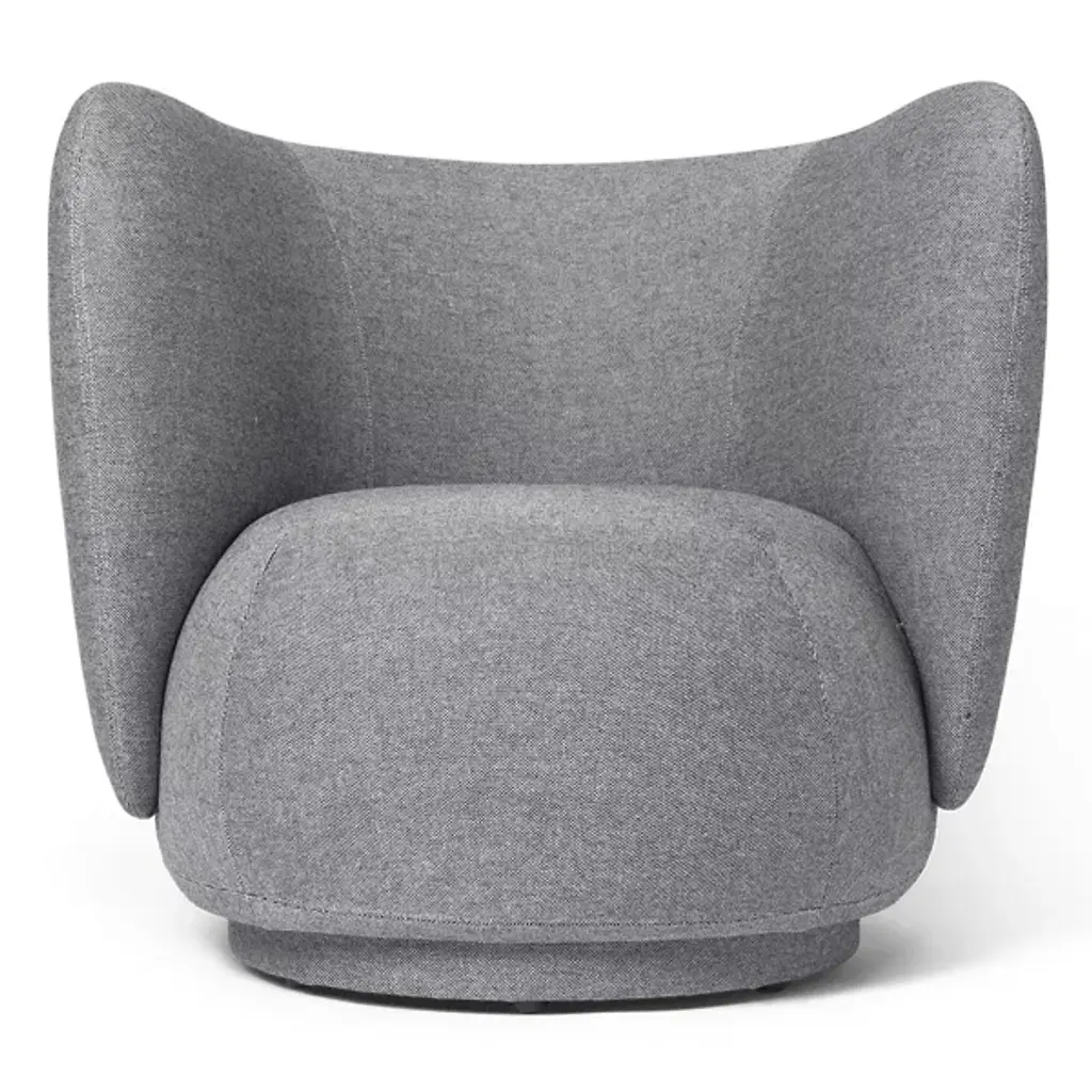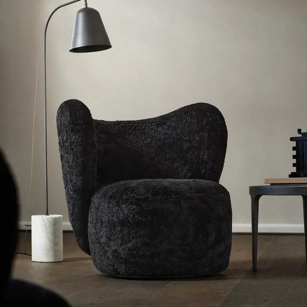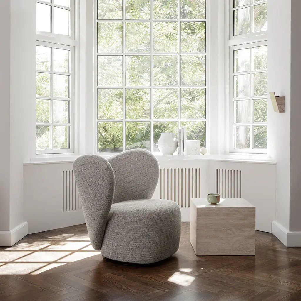The Little Big Chair, designed by Kristian Sofus Hansen and Tommy Hyldahl, features a low, softly curved backrest that wraps around you, providing a cozy and cocoon-like experience. The chair is constructed with an FSC-certified wood frame, and a foam core for comfort and has a a hidden 180-degree swivel base with an auto-return feature and 360-degree full swivel without return. Available in a range of luxurious fabric and leather.