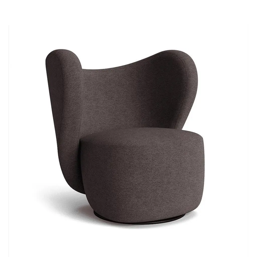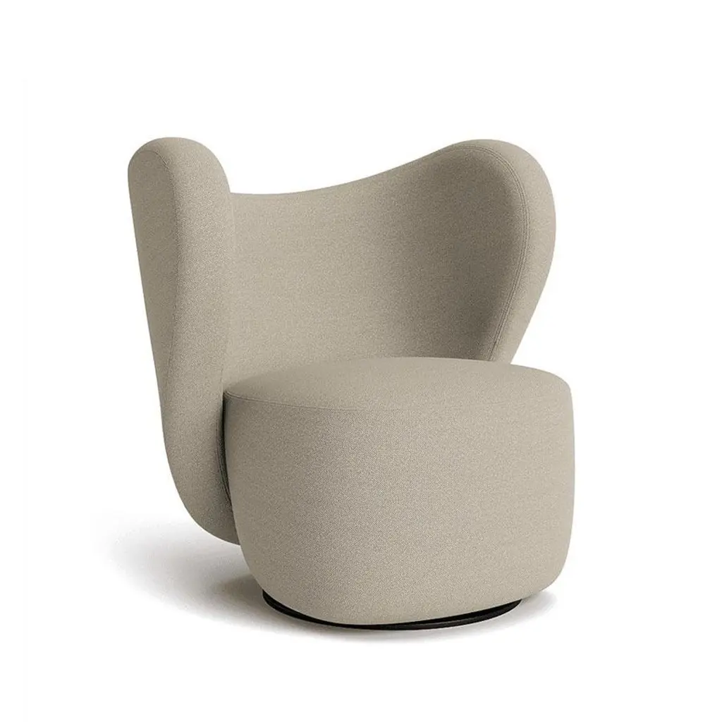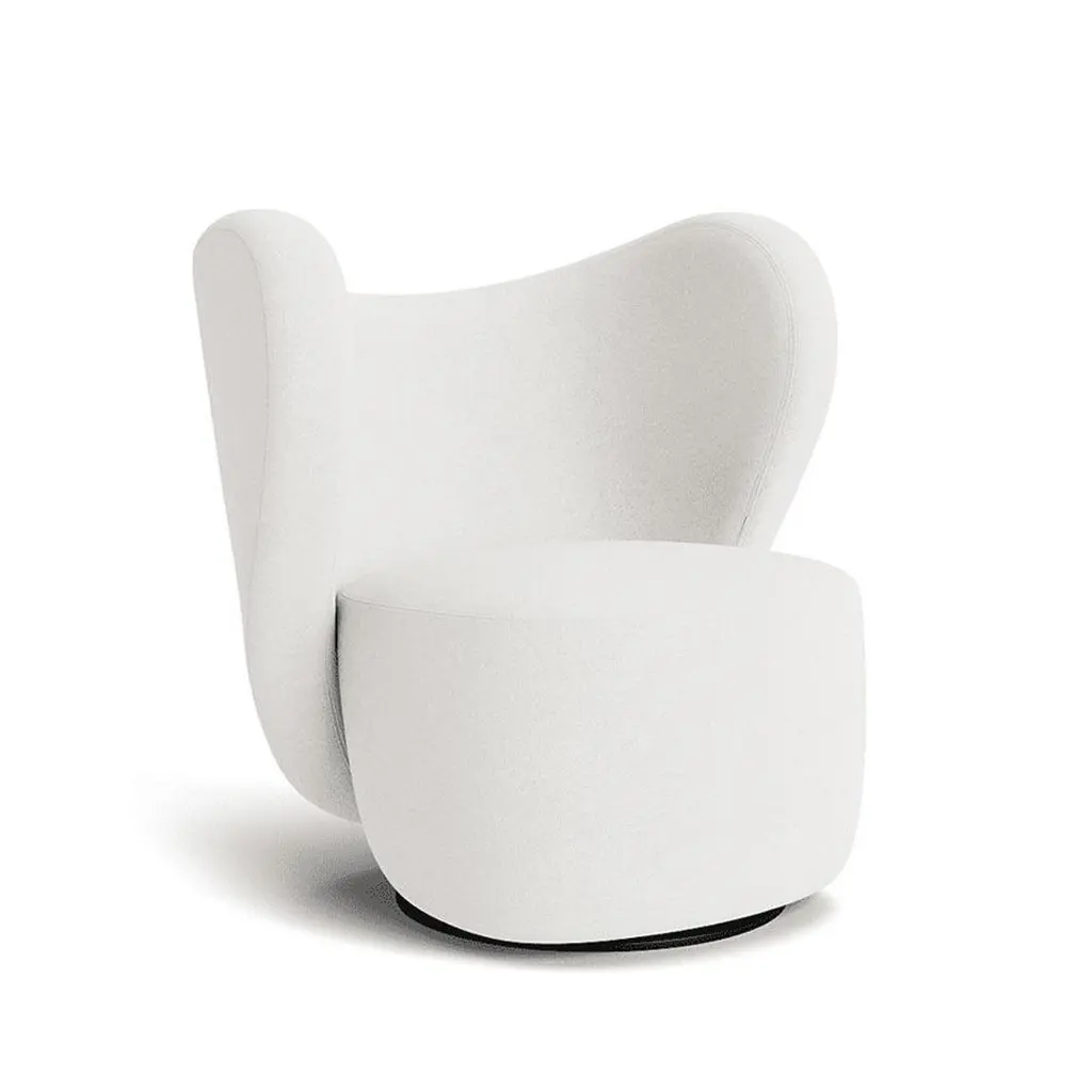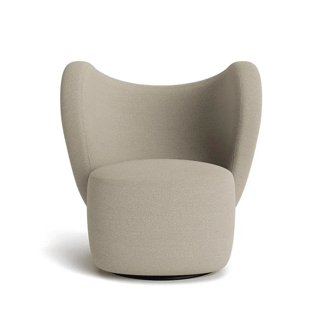 Little big chair, swivel armchairSigned by Kristian Sofus Hansen and Tommy Hyldahl for Norr11. Model shown on the picture:Fabric: Hallingdal (0220)Made in ItalyWith its sculptural and organic shape, the Little Big Chair is a welcoming lounge chair. The Little Big Chair offers versatility with its swivel base options: a 180-degree swivel with a return feature and a 360-degree full swivel without return. Both designs enable smooth rotation for user engagement. The auto-return mechanism ensures the chair automatically returns to its original position, enhancing convenience and functionality.NORR11 is a Danish design brand driven by a vision to bring new perspectives to modern interiors across furniture and lightings. Crafted with honest and natural materials the designs are built-to-last and with commitment to sustainability.NORR11 believe in creating pieces with personality, providing character and comfort to any space. Fusing Scandinavian design with Asian aesthetics NORR11s design language combines the past and the present in a timeless design. The inspiration is found in the nature and raw natural materials which are evident in the collections.