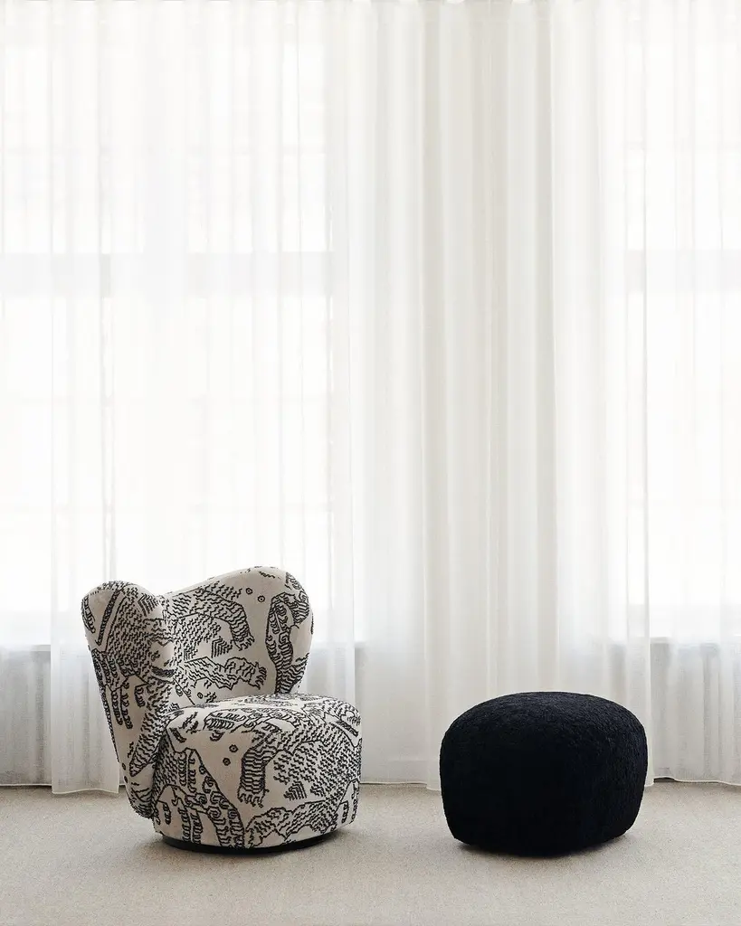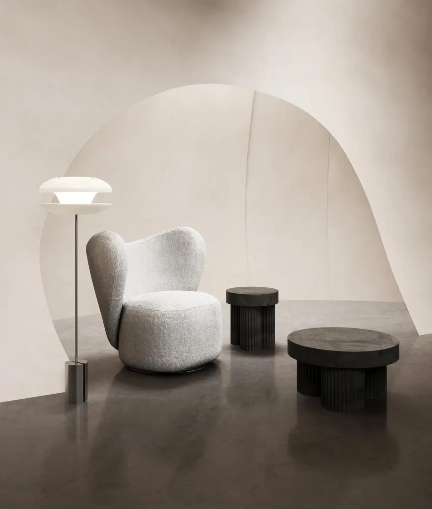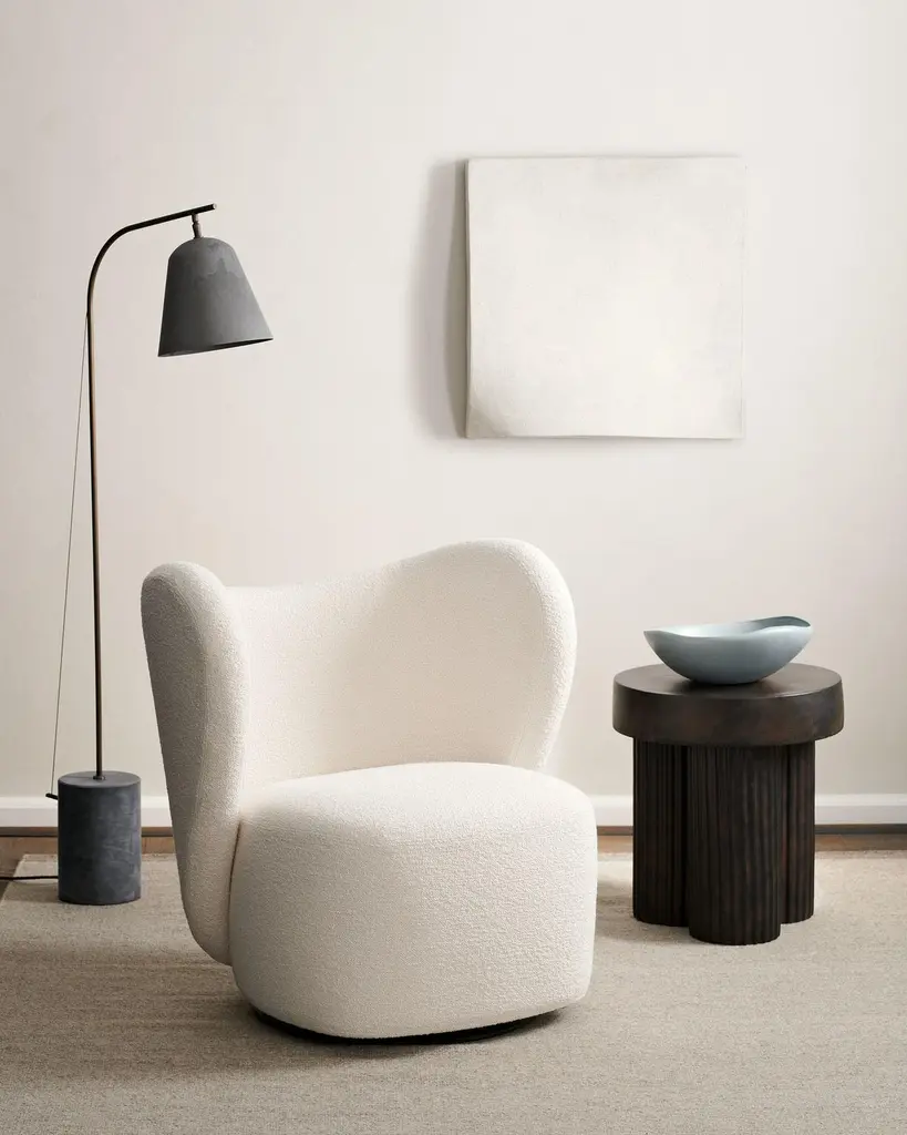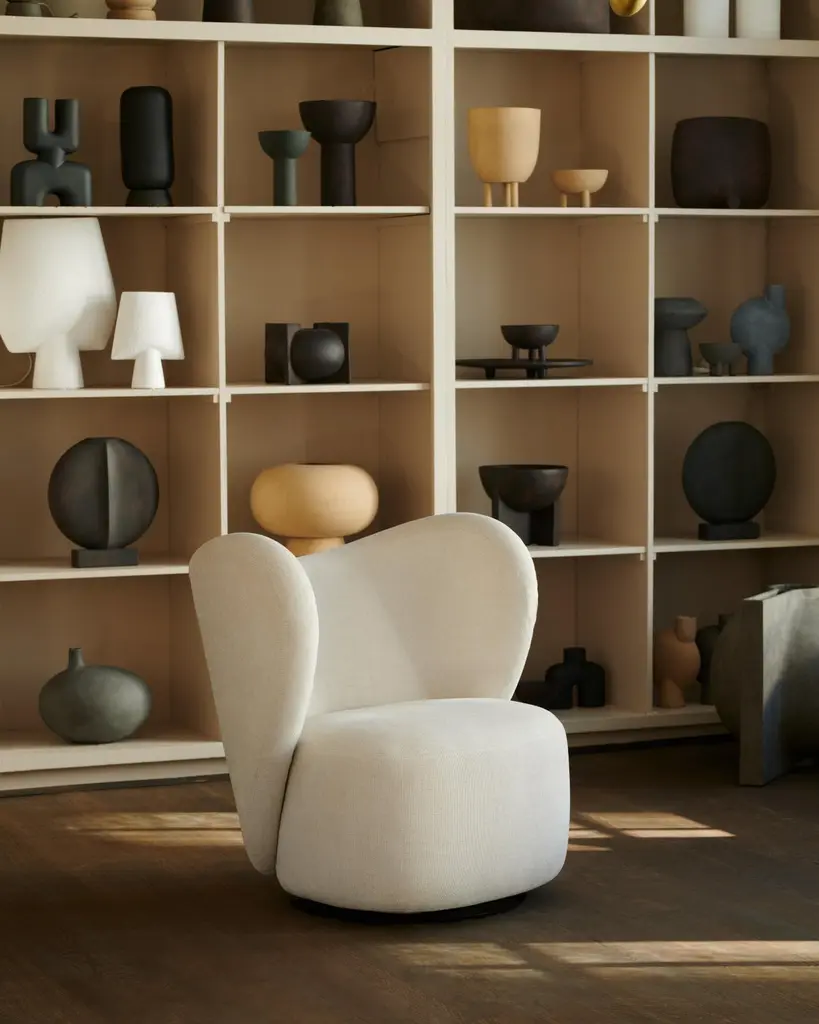 Little big chair, swivel armchairSigned by Kristian Sofus Hansen and Tommy Hyldahl for Norr11. Model shown on the picture:Fabric: Hallingdal (0220)Made in ItalyWith its sculptural and organic shape, the Little Big Chair is a welcoming lounge chair. The Little Big Chair offers versatility with its swivel base options: a 180-degree swivel with a return feature and a 360-degree full swivel without return. Both designs enable smooth rotation for user engagement. The auto-return mechanism ensures the chair automatically returns to its original position, enhancing convenience and functionality.NORR11 is a Danish design brand driven by a vision to bring new perspectives to modern interiors across furniture and lightings. Crafted with honest and natural materials the designs are built-to-last and with commitment to sustainability.NORR11 believe in creating pieces with personality, providing character and comfort to any space. Fusing Scandinavian design with Asian aesthetics NORR11s design language combines the past and the present in a timeless design. The inspiration is found in the nature and raw natural materials which are evident in the collections.
