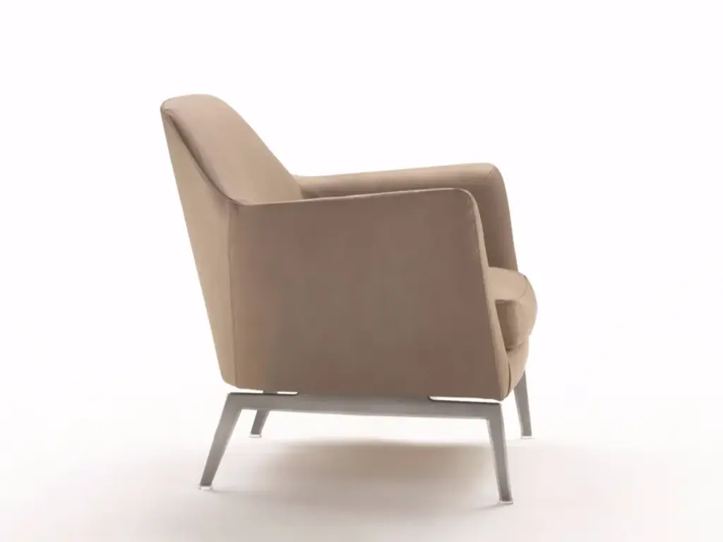 With its classic lines, tempered with a more uncluttered, contemporary look, the Luce armchair is custom-designed to set a tone of style and elegance in both residential and hospitality settings. Thanks to its ergonomic shell and the generously-sized goose-down cushions, the Luce armchair is engineered for extreme comfort. It comes with either a swivel or non-swivel metal base, in satin, chrome, burnished, black chrome or champagne finish.TECHNICAL SPECIFICATIONS Frame in metal with foam injected polyurethane padding covered with protective fabric lining. Seat down cushion with resilient inner core. Upholstery removable fabric or leather covers. Armchair feet in satined, chromed, black chromed, burnished or champagne metal. Armchair with swivelling movement (patented machanism) base in satined, chromed, black chromed, burnished or champagne metal. MATERIALS Foot: metal finishes Upholstery: cashmere - cotton - leather - nabuk - linen - mixed composition - velvet