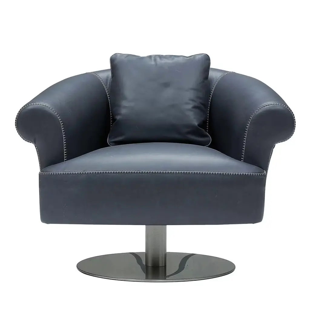 The Lune Swivel Chair from Lemieux et Cie is a masterful expression of sculptural comfort, its perfectly rounded form embracing the body with the same enveloping ease as the great Danish Modern chairs of the 1940s and ’50s. With its meticulously tailored, tufted back rests atop a discreet swivel base, this piece moves effortlessly within a space, offering both versatility and an undeniable sense of design pedigree.The Lune Swivel Chair is handmade by skilled artisans in North Carolina