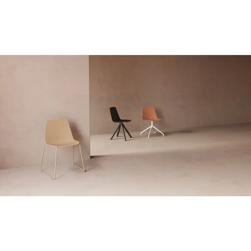 Viccarbe’s Maarten chair combines the spirit of contemporary Spanish design with influences from the 1970s. The seat shell of the Maarten office chair is made of light and durable polypropylene, and the sturdy construction is ensured by a pyramid swivel base in aluminum. The sleek desk chair is well suited for studying and working from home as well as for offices, hotels and other public spaces. Designed by Víctor Carrasco for the Spanish company Viccarbe, the Maarten collection consists of a diverse selection of chairs and tables. Their form languages complement each other in style, and their simplistic, timeless appearance is also compatible with the widest range of furniture and home decor styles.