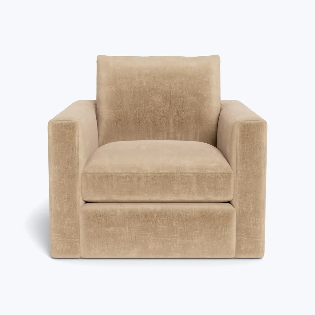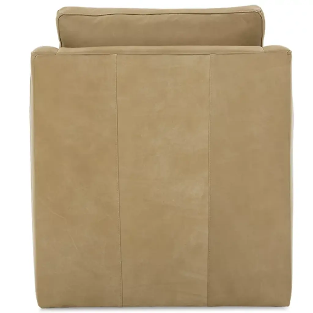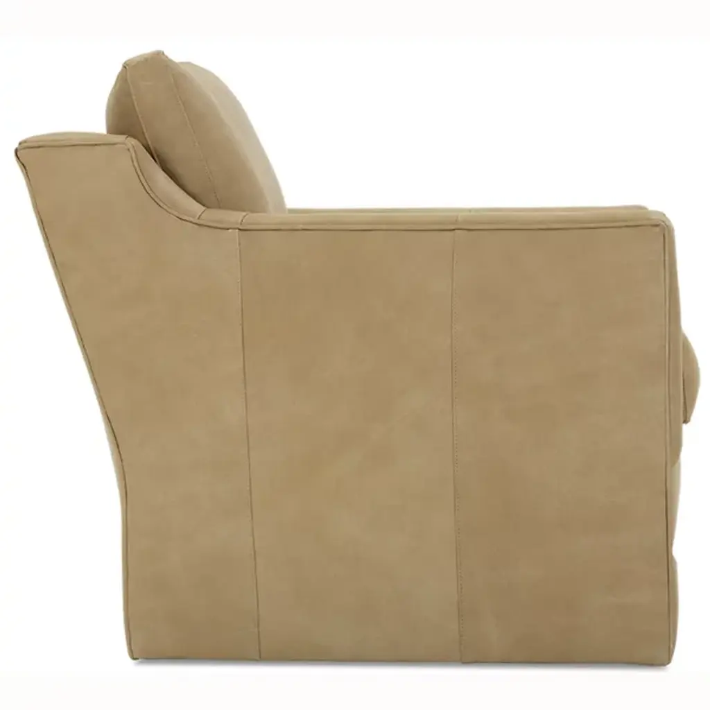 The Madeline Leather Swivel Chair from Rowe Furniture provides convenience, style, and comfort to any space it adorns. The cloud cushion, which is made to enhance both comfort and support, is flippable to increase this effect, and the whole thing is upholstered in leather with a zipper on the back. The swiveling base lets you change your position to look at different parts of whatever room you're in or the people in it.
