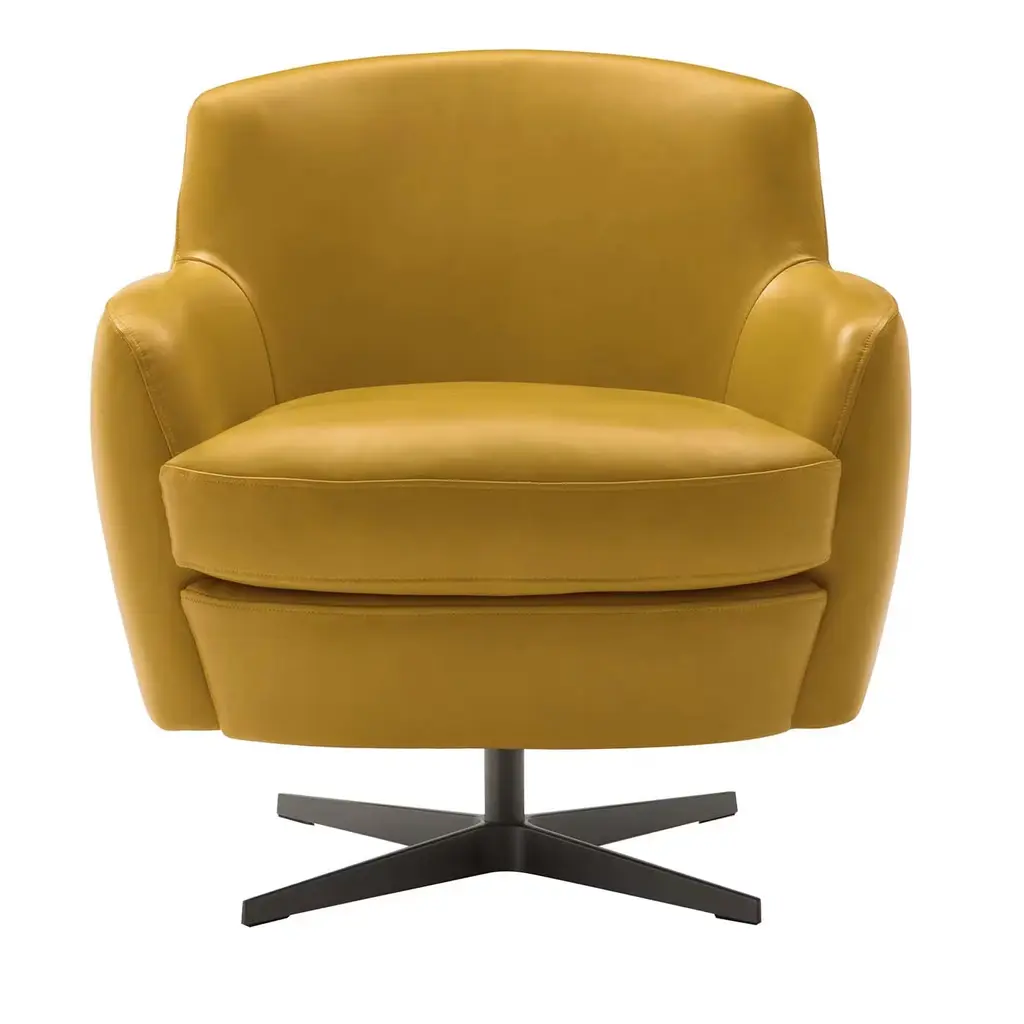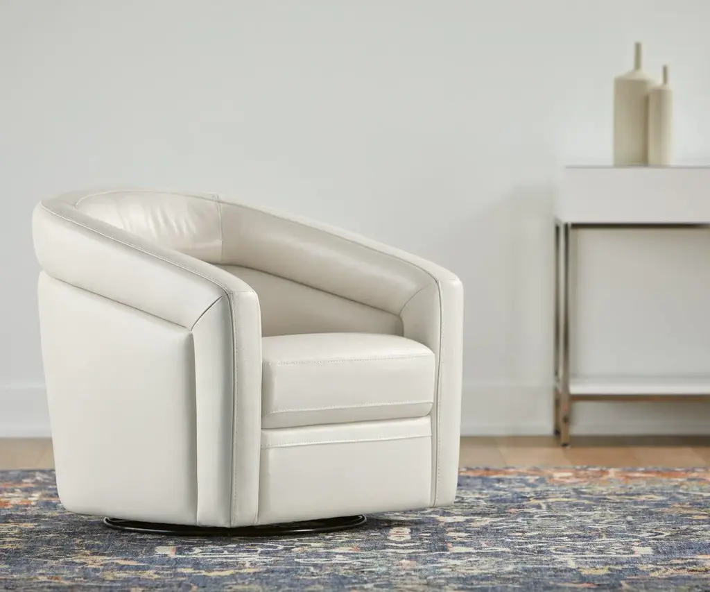 The Maedoc Swivel Chair is a stylish design accent in any room you decide to place it. Upholstered in leather, with plush padding and attractive detailed stitching, you will be cradled in comfort and class. Never lose track of the conversation as you swivel to turn your attention wherever necessary. This lounge-era piece is sure to become a crowd favorite in your home.