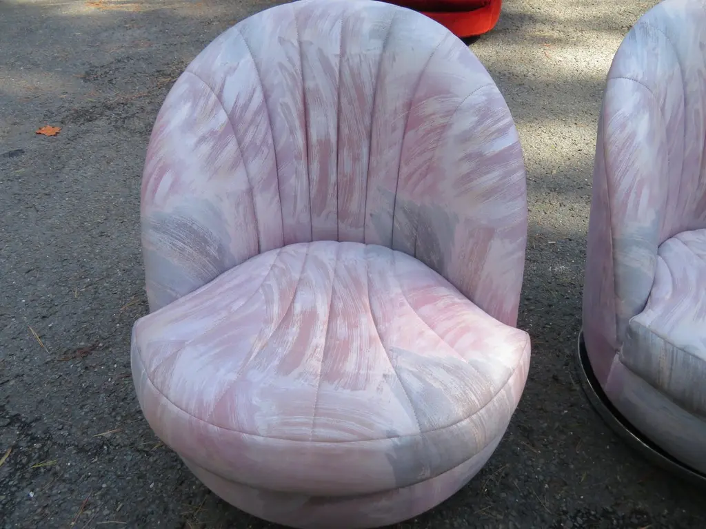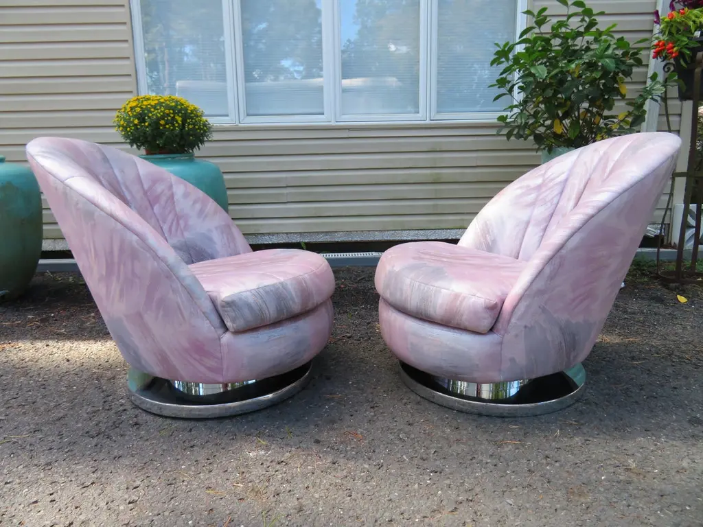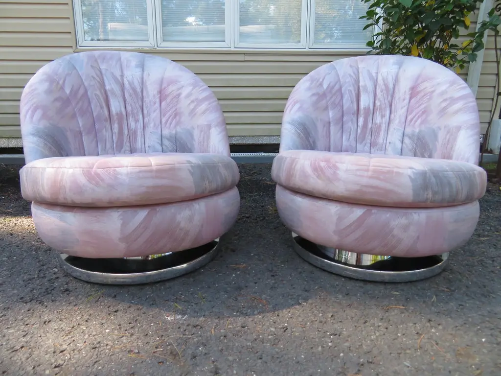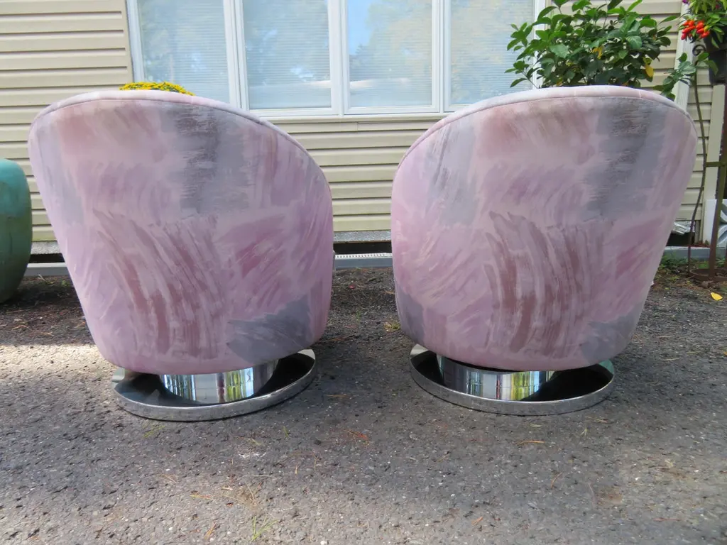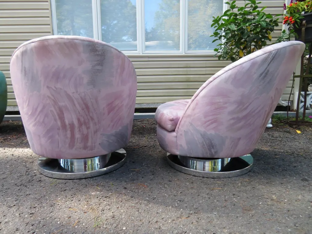 Magnificent Pair Milo Baughman Thayer Coggin Swivel Chrome Rocker Chairs