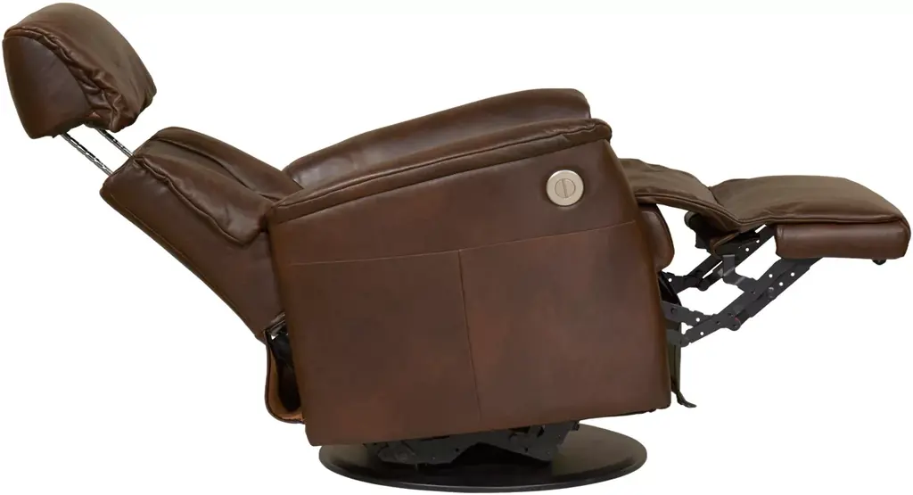 Take a break and seat yourself in our Magnus recliner from the Ergo Comfort collection. This swivel rocker features 100% top-grain leather and high-density cushioning for maximum style and support. Recline with an infinite power or two-position manual option and enjoy the adjustable headrest tilt feature for a tailored relaxation experience. The manual version swivels 360 degrees with a locking base, while the power version does not lock and swivels 180 degrees. Impressive and comfortable, this chair is available in standard or large widths to meet your needs.